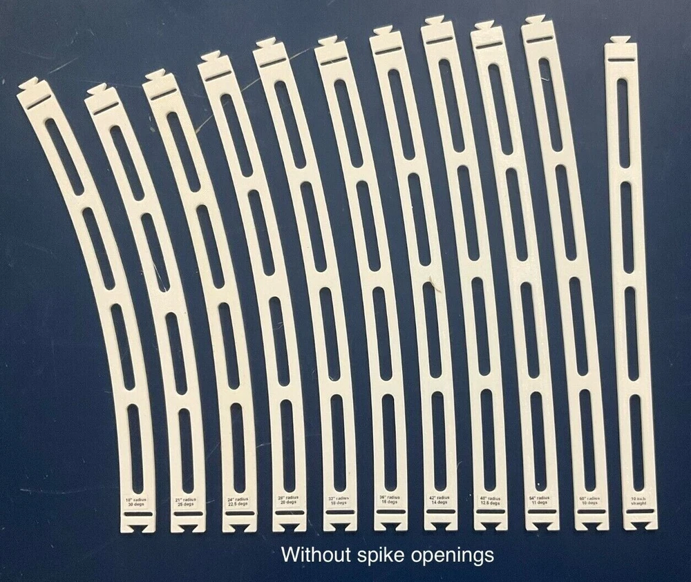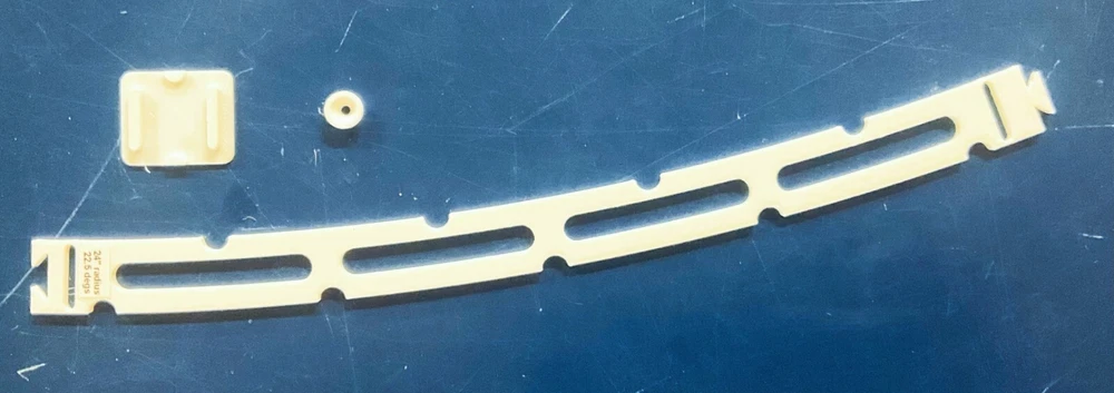 HO Track Placement Snap Template Sections for Laying HO Scale Track NOTE: If purchasing more than one section select "Add to cart" and when all sections have been selected, go to your cart and select "Request combined shipping" for an invoice with combined shipping cost. Request combined shipping - ke "to enable combined shipping costs. These Snap Templates help make the process of laying HO Scale track simpler and easier. They are designed to help ensure your track is laid smoothly and accurately. Whether you are a seasoned model train enthusiast or just starting out, these templates help facilitate placement of HO Scale track at an affordable price. Designed with attention to detail and precision, the track placement Snap Templates snap together by way of a unique dovetail joint locked in place with a connector, making the intended relationship between template sections more accurate to specific curvatures and angles. One connector is included with each Snap Template section. A large selection of curvatures are available including elliptical transition sections that enable smooth transition from a straight section of track to a specific radius of curvature circular arc. This smooth transition provides for a more prototypical scene as a locomotive enters the curve. Each Snap Template section also features center line slots for placing nails into ties, or, for scribing a track center line using a scribing stencil. One scribing stencil is included with each Snap Template section. Snap Template sections are also available with or without openings for hand laying rail spikes. No guarantees or warranties expressed or implied. Please review photos before purchasing. No returns or refunds. Contact the Seller if you have any questions or would like to see other specific curvatures offered. Thanks for looking!