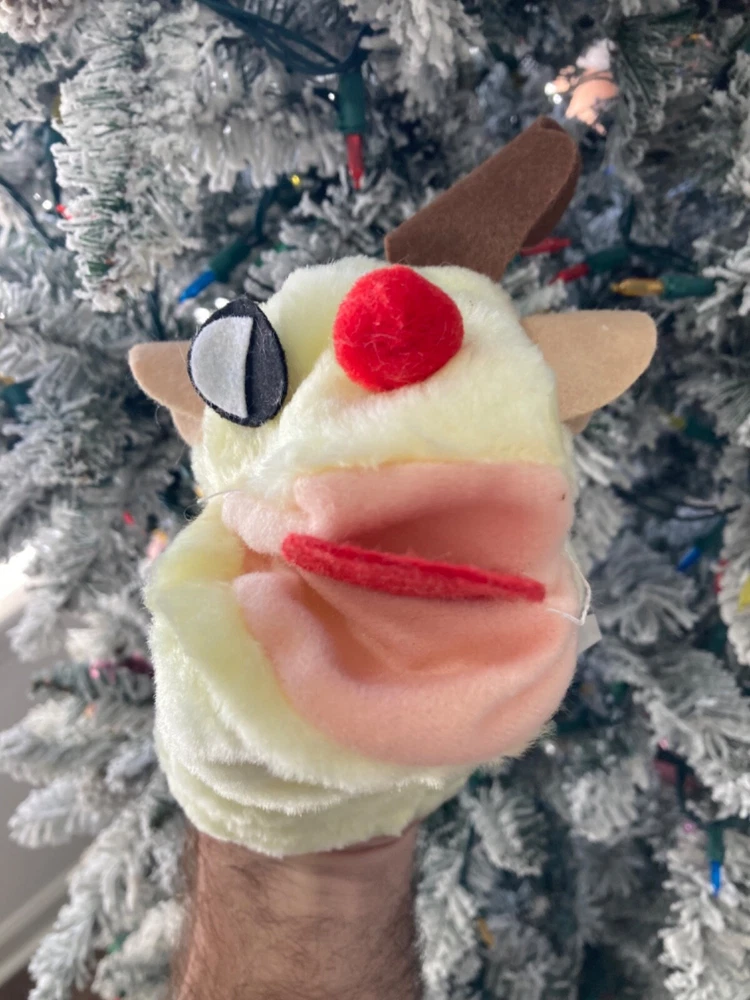 HOOKED-ON-VINTAGE IS SO PLEASED TO OFFER THIS RARE, POLYESTER AND FELT, SWEET CHILDREN’S SIZE AT 7-1/2” X 4-1/2” WIDE, RUDOLPH THE RED NOSE REINDEER HAND PUPPET. NEW OLD STOCK, NEW Hand Puppet Plush FUN RUDOLPH THE Red Nose REINDEER Christmas NOS FELT SOFT HO-HO-HO MERRY CHRISTMAS! NEW Hand Puppet Plush FUN RUDOLPH THE Red Nose REINDEER Christmas NOS FELT SOFT Exact era unknown. Please email us with any questions and please check our Ebay store, Hooked-On-Vintage, for more great vintage items. We combine ship :-)