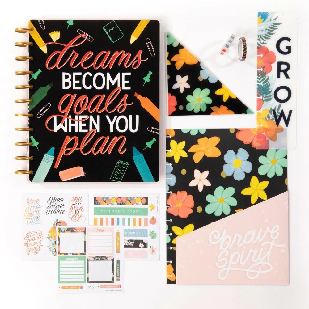 NEW Happy Planner teacher box kit Year 2020-2021 DREAMS AND GOALS BIG sized box kit includes: 1 teacher planner—12 months DATED (August 2020 – July 2021) 1 snap in pocket folder 1 bookmark 1 adhesive pocket 2 rolls of washi tape 3 sticker sheets Never used or opened Brand new Comes from a pet free and smoke free home Ships USPS mail