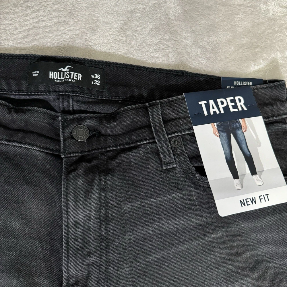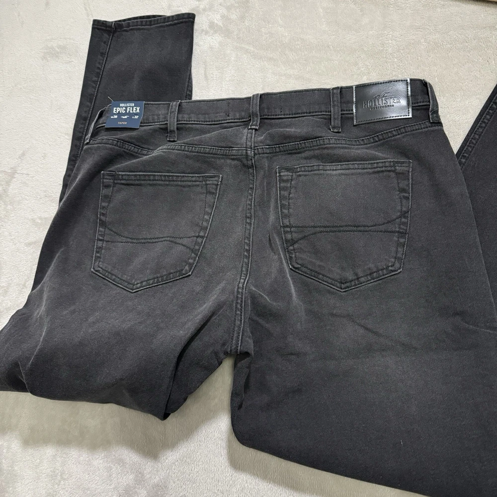Elevate your denim game with these Hollister Epic Flex Taper jeans. The solid black color and cotton blend material with a denim fabric type make them a versatile addition to any wardrobe. The zip and button closure, medium wash, and regular fit make them a comfortable and stylish choice for any occasion. These jeans are machine washable and have a waist size of 36 inches with an inseam of 32 inches. The tapered style adds a modern touch to the classic denim design. Perfect for the fashion-conscious man who values both comfort and style.