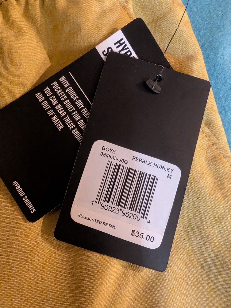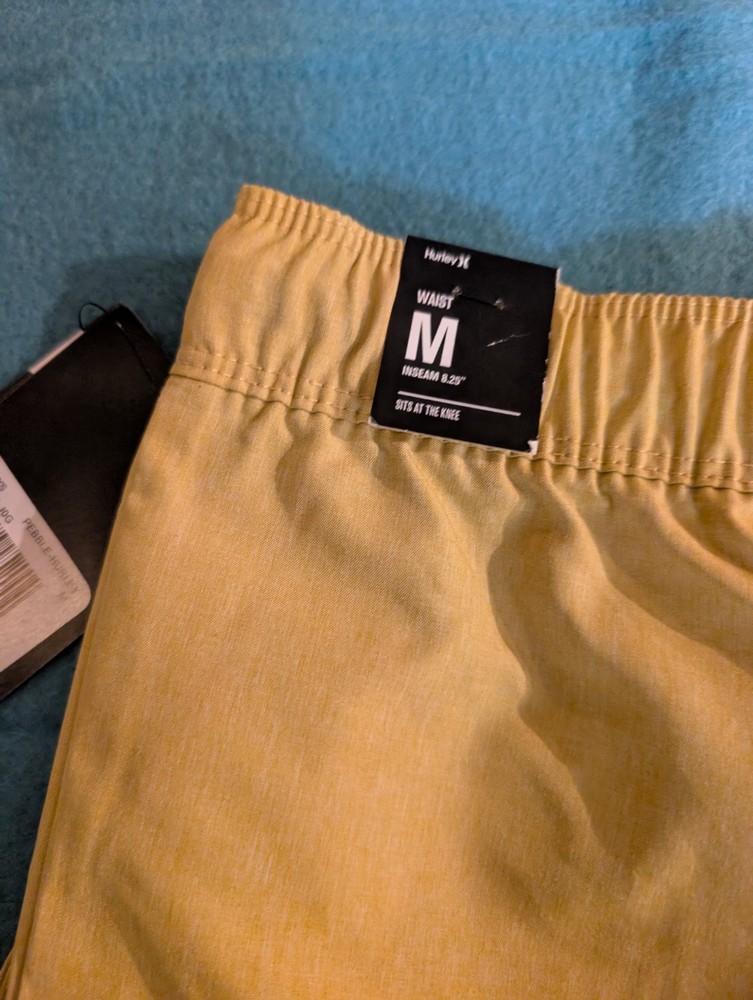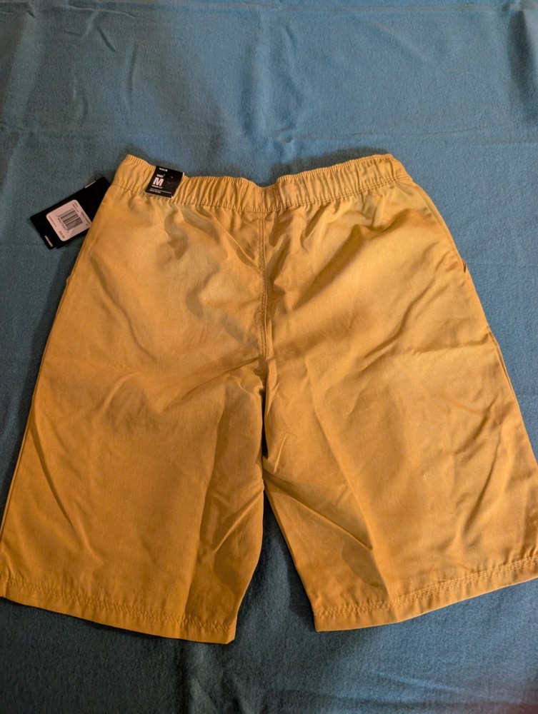 The NEW Hurley Boys Hybrid Short in Pebble Khaki Tan MSRP $35 is a stylish and versatile choice for active boys size Medium 10-12. Made of 100% polyester in a solid pebble tan these shorts feature a comfortable elastic waist and drawstring closure for a perfect fit. The athletic style shorts are machine washable and easy to care for, making them ideal for both activewear and casual occasions. The pebble pattern character adds a unique touch to these brown shorts, perfect for the summer, fall, and spring seasons.