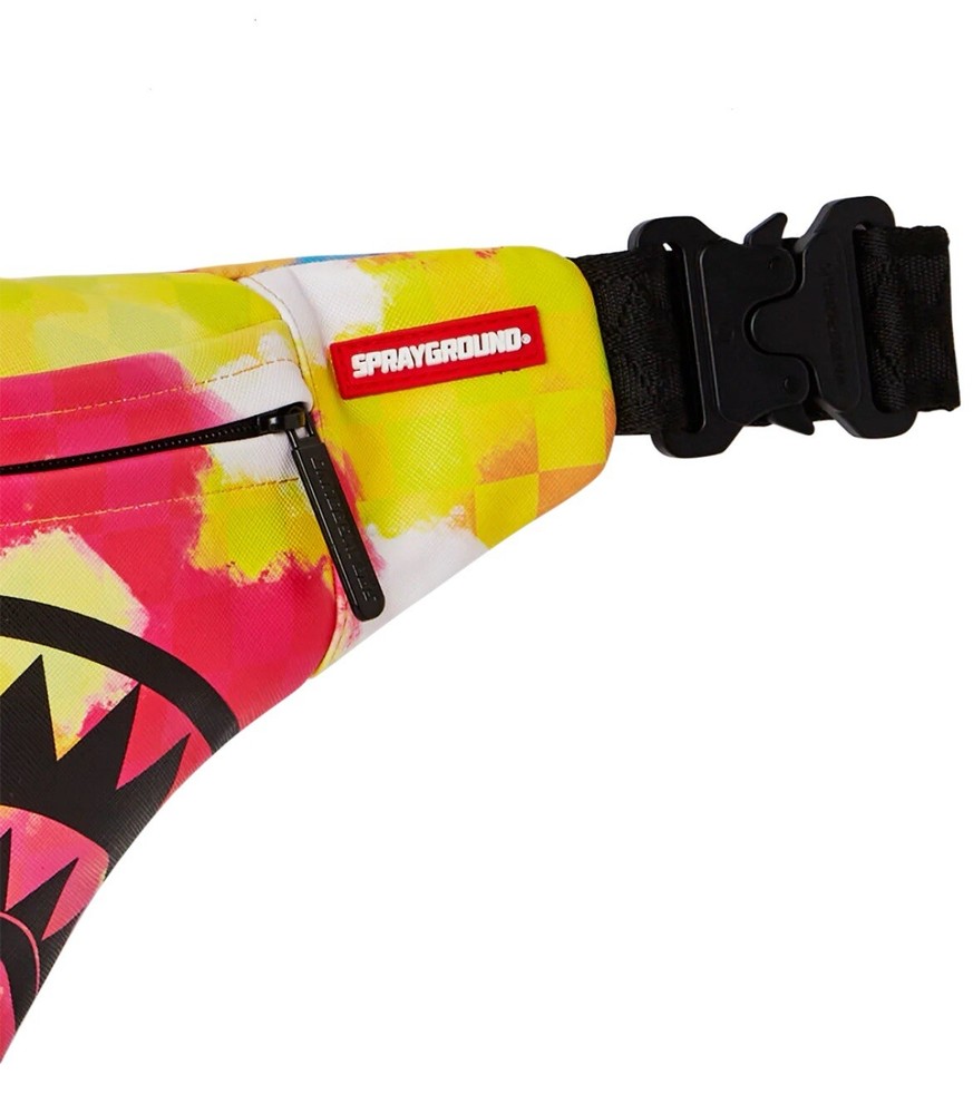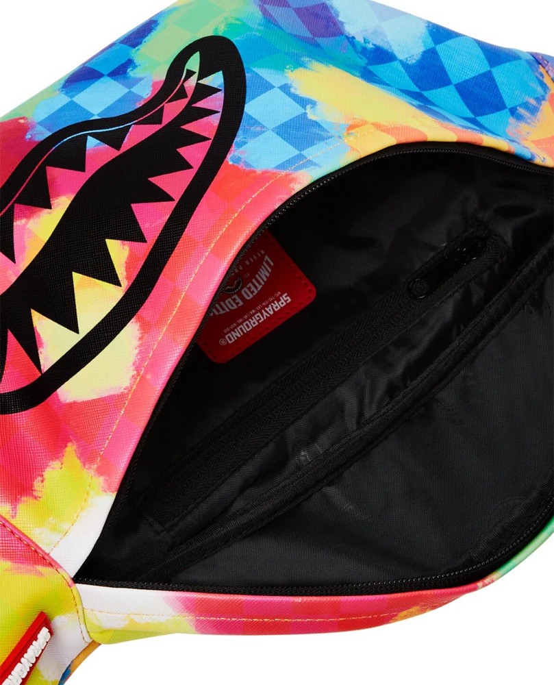SPRAYGROUND VIVID LIVID AND SPLIVID SAVVY CROSSBODY BAG NEW WITH TAGS LIMITED EDITION Travel light & efficient with this durable yet stylish cross-body waist bag. Perfect for your phone, wallet, sunglasses, keys and other small items. PRODUCT DETAILS • Adjustable double-sided VSM strap for custom sizing • Red zippered pocket with metal buckle hardware Dimensions: 7" x 1.5" x 15"
