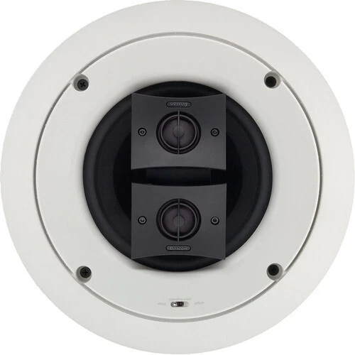BOSTON ACOUSTICS DSi465T2 NEW IN BOX IN WALL SPEAKER (Single Speaker) Get incredibly flexible performance from a speaker that installs directly into your ceiling. The DSi465T2 from Boston Acoustics, sold individually, Delivers clean, high-impact stereo sound from a single speaker — Perfect for getting great audio in awkward areas like a hallway, bathroom or kitchen. The DSi465T2 has inputs for both left and right channels and two 1" tweeters (one per channel), so you'll hear both halves of the stereo music mix. And a 6-1/2" woofer with dual voice coils takes care of the mids and bass with power and precision. But that's not all. You can also use the DSi465T2 as a single-input dipole/bipole surround speaker in a Boston Acoustics "Hidden Theater™" surround sound system. There's a selectable direct/diffuse switch. Depending on your setup, you can have the two tweeters firing in phase (bipole) for clear, directional sound, or out of phase (dipole) for a more diffuse soundfield. The DSi465T2 makes a great surround speaker matched with a front soundstage composed of the high-performance Brand New in the Box. Original High End Boston and nearly impossible to find New and Unused These were from a local company that was still installing these locally till they closed up their doors and I purchased some of their inventory. All of these I have for sale are factory fresh as they were always stored indoors in a heated facility. NEW PRICE ON THIS SPEAKER WHEN THEY WERE OUT WAS 599.00 stereo input speaker dual 1" Kortec® tweeters 6-1/2" woofer handles up to 100 watts frequency response 60-20,000 Hz (±3dB) sensitivity 91 dB impedance: 8 ohms in stereo input mode, 4 ohms in single input mode selectable direct/diffuse modes paintable, moisture-resistant speaker grille cutout dimensions: 8-11/16" diameter mounting depth: 4-9/16" FAST SHIPPING ON THIS - I SHIP OUT THE SAME DAY OR NEXT AFTER PURCHASE