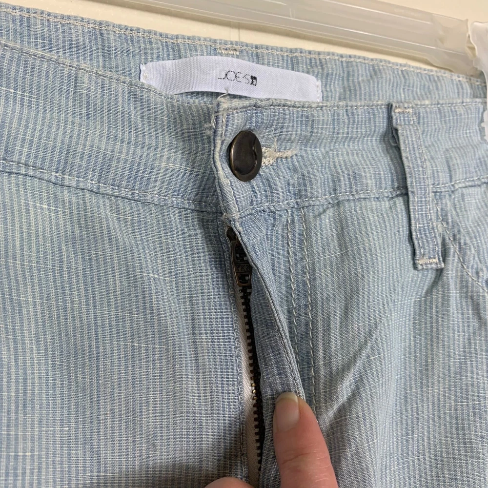 NEW Joe’s Jeans Weekender Collection Sky Blue Striped Linen Blend Pants - 28 New with tags! Slim fit 5 pocket design Zip fly with button closure Soft and lightweight Half-waist: 16" Inseam: 32" Length: 41" Rise: 9" Measurements are lying flat, and estimates only. 3P30 48-4655 11 oz