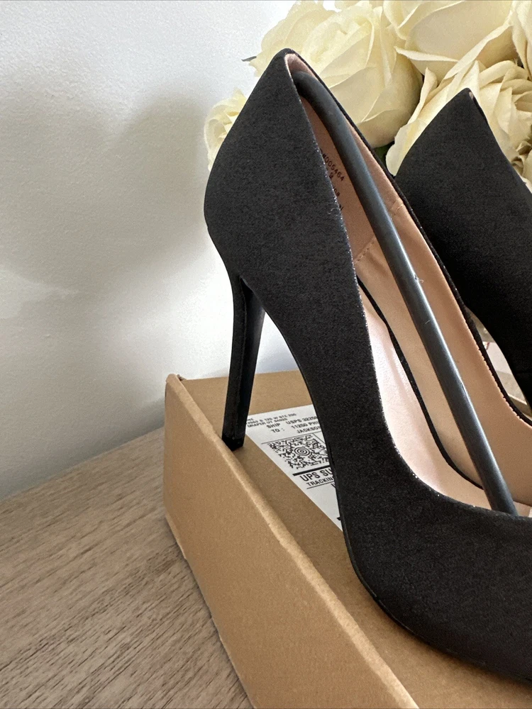 US Shoe Size: 9 Pattern: Solid Heel Height: Ultra High (4 in & Higher) Vintage: No Brand: Journee Collection Season: Fall, Spring, Summer, Winter Occasion: Business, Formal, Party/Cocktail, Wedding Color: Black Style: Pump Department: Women Insole Material: Foam Personalize: No Customized: No Closure: Pull On Shoe Width: Standard Type: Heel Toe Shape: Pointed Toe Upper Material: Synthetic Heel Style: Stiletto Outsole Material: Rubber