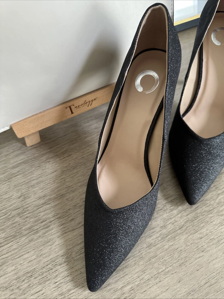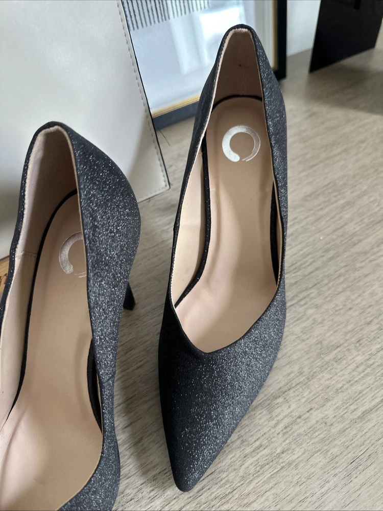 Journee Collection Women's Black Sparkly NINNA Pumps Size 9 NEW IN BOX. Condition is New with box. Shipped with USPS Ground Advantage. Heel 4” Bag 8.5”x12” Bag is NEW from UK designer Dorothy Perkins