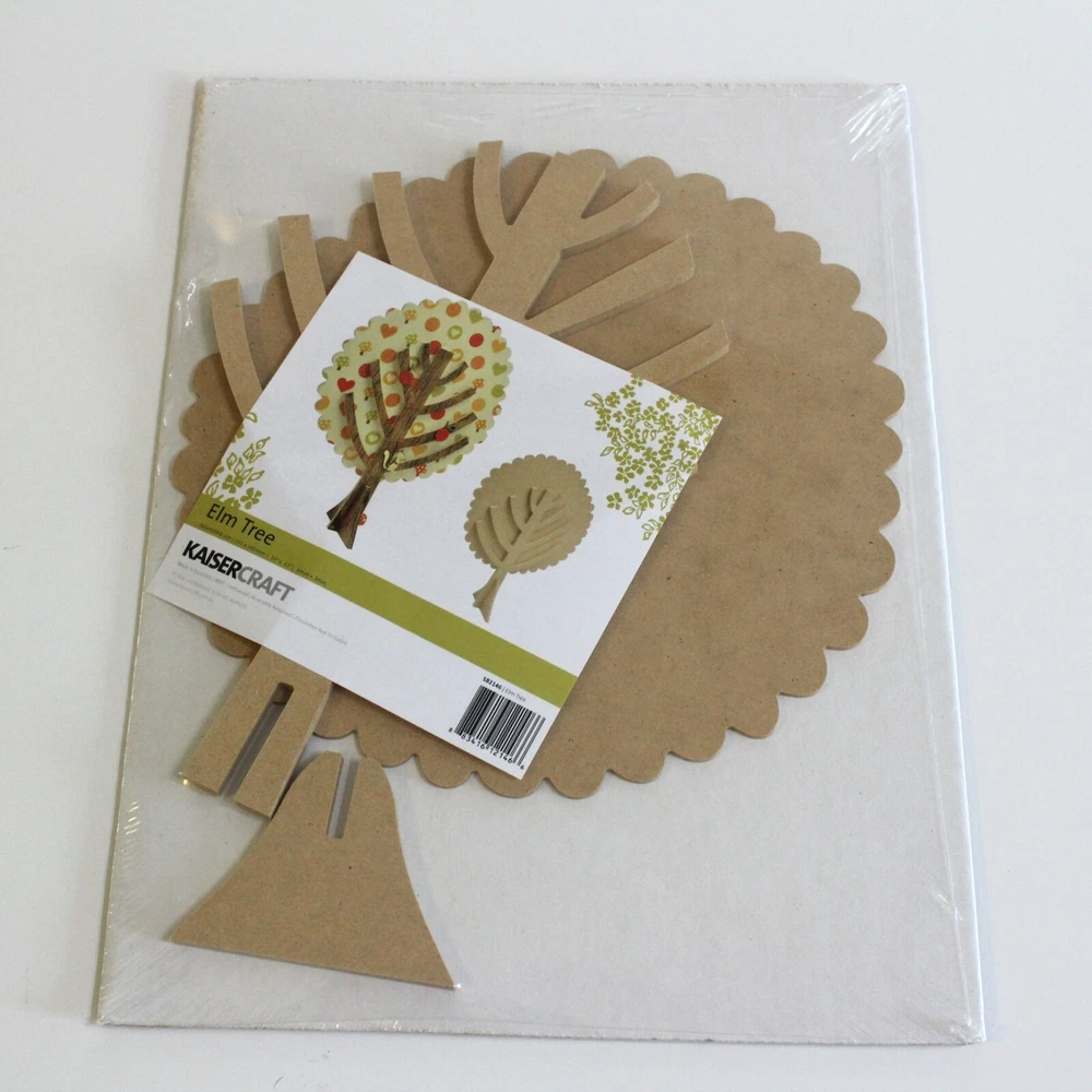 New in Package KaiserCraft Oak Tree & Elm Tree DIY Craft Kit Lot This craft kit includes two large blank MDF wooden press-board type cut out trees including one oak tree and one elm tree. They are amazing quality and are dimensional. Add your own creativity and embellishments to make into trendy home decor. Includes blanks only. Embellishments not included Dimensions Oak Tree: 19" tall x 12" wide Elm: 13" tall x 10" wide Some slight assembly required