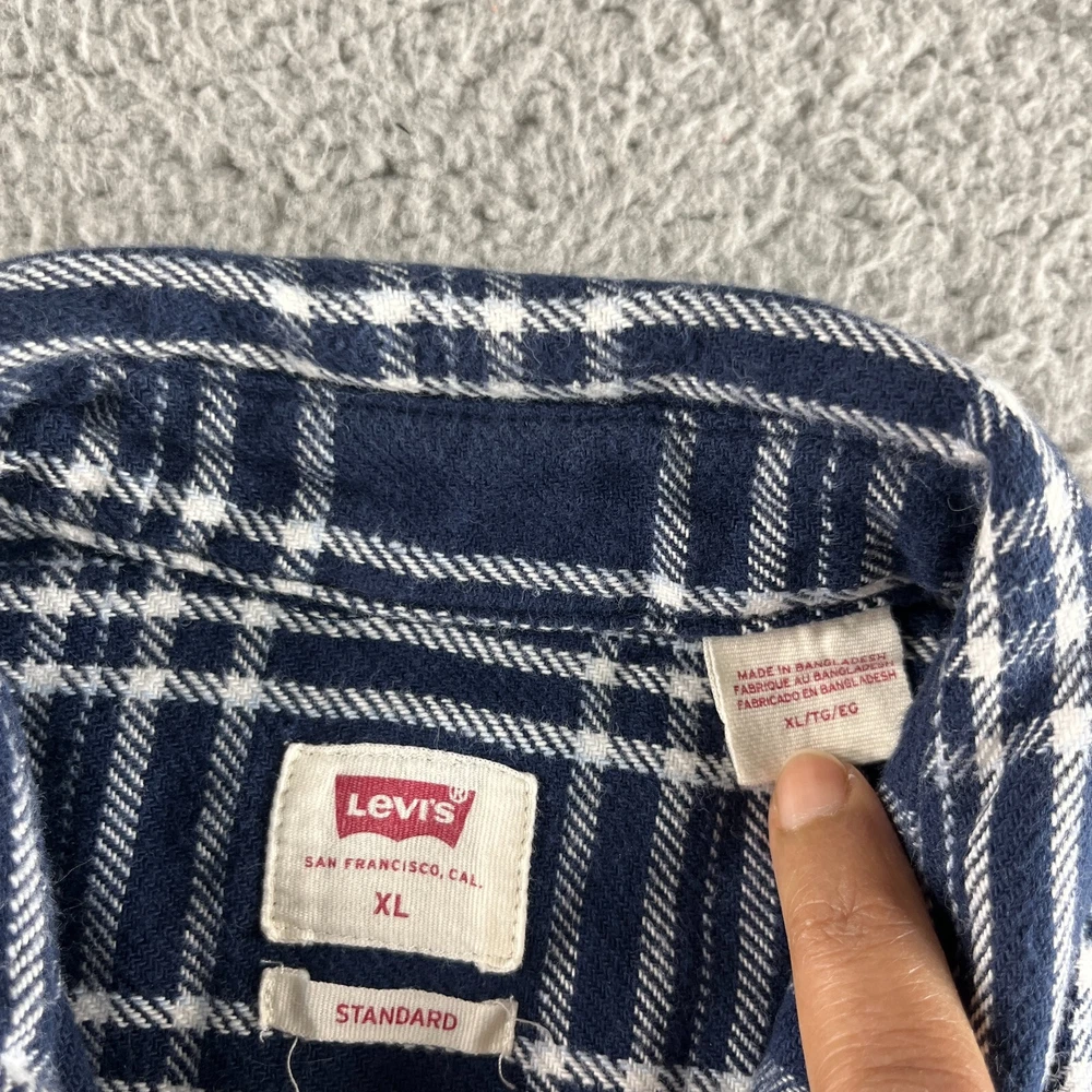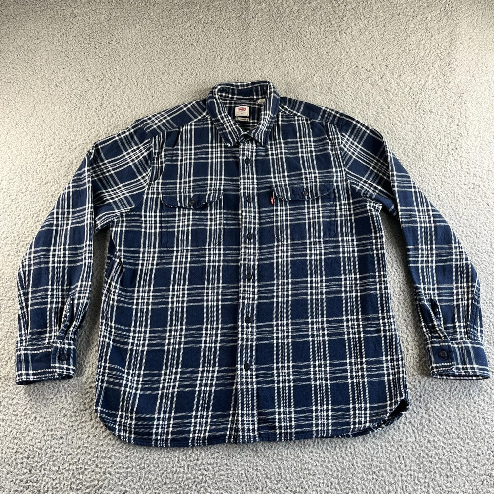 NEW Levi's Shirt Mens Extra Large Blue Plaid Flannel Button Up Standard Western Condition: New without tag. Very good condition. Please see all photos for condition and measurements. Please let us know if you have any questions. Thanks for shopping with us.