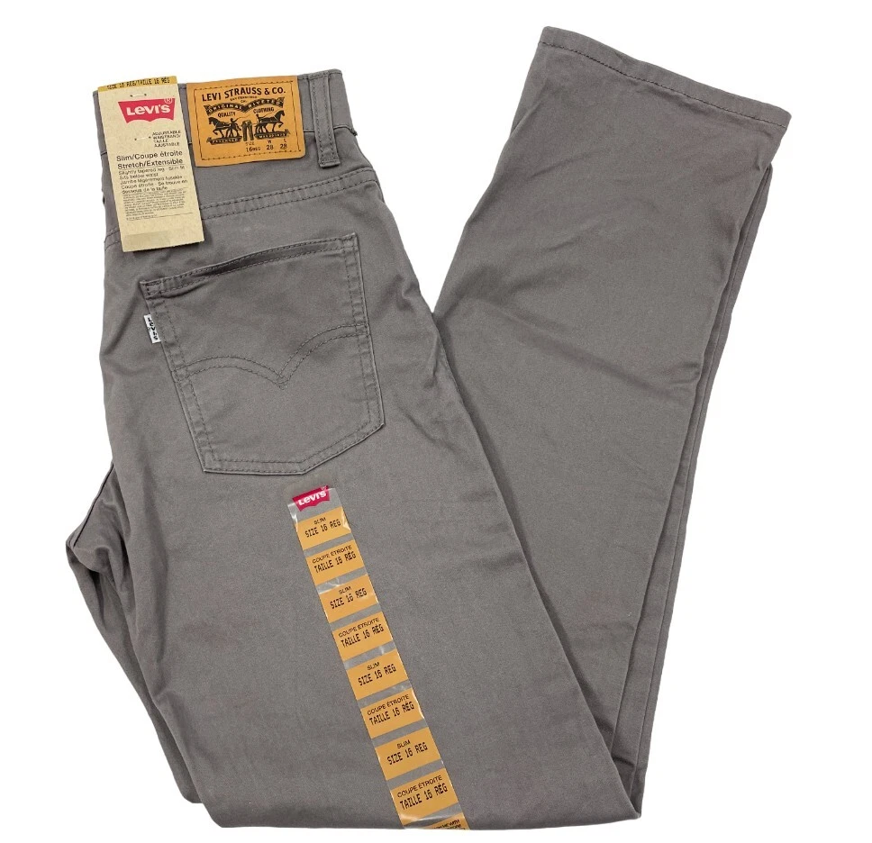 Closure: Zip Style: Tapered Material: Cotton, Spandex Fabric Type: Denim Rise: Mid (8.5-10.5 in) Pattern: Solid Fit: Slim Features: Slimming, Stretch Department: Women Type: Jeans Size: 16 Brand: Levi's Color: Gray Size Type: Regular