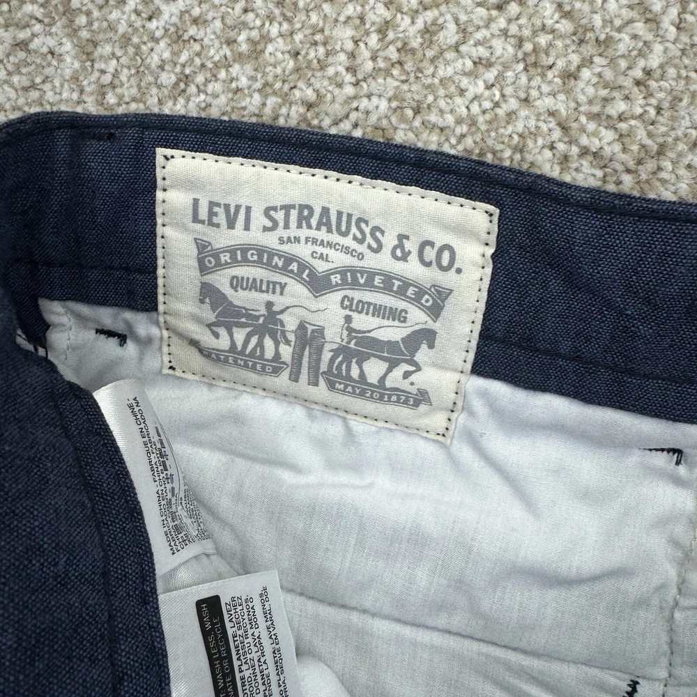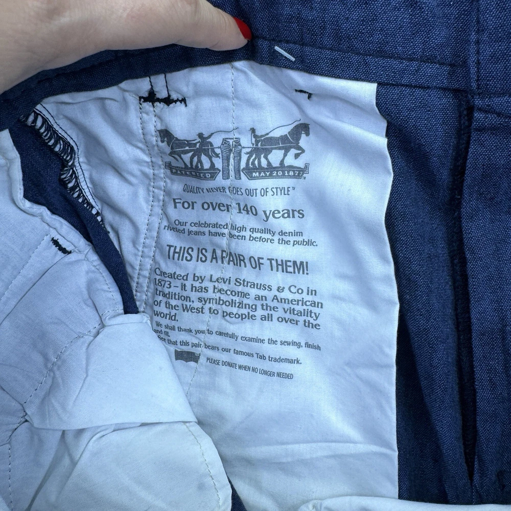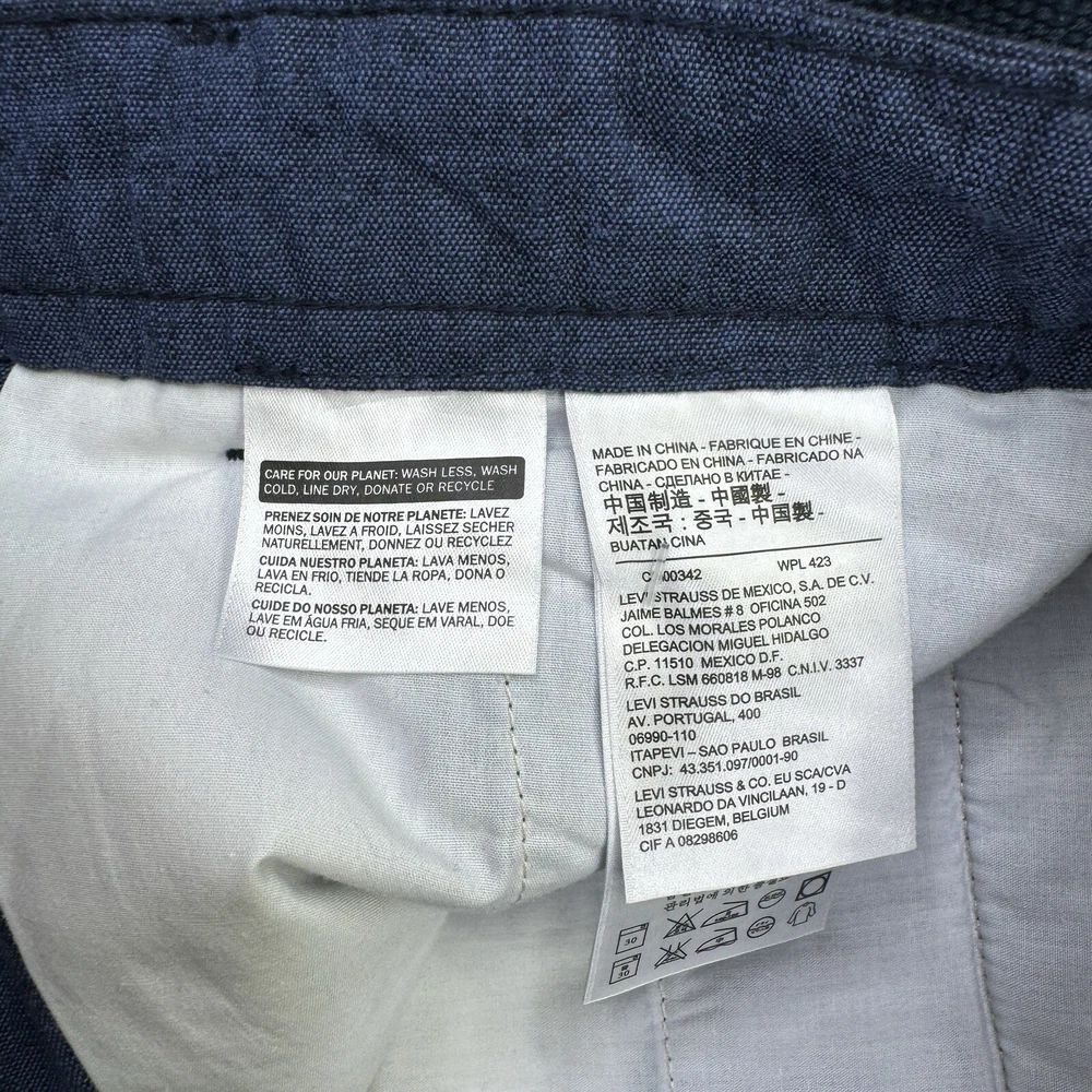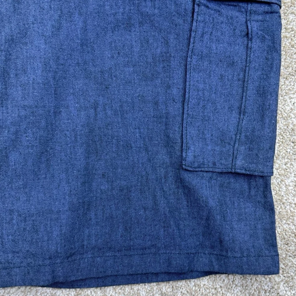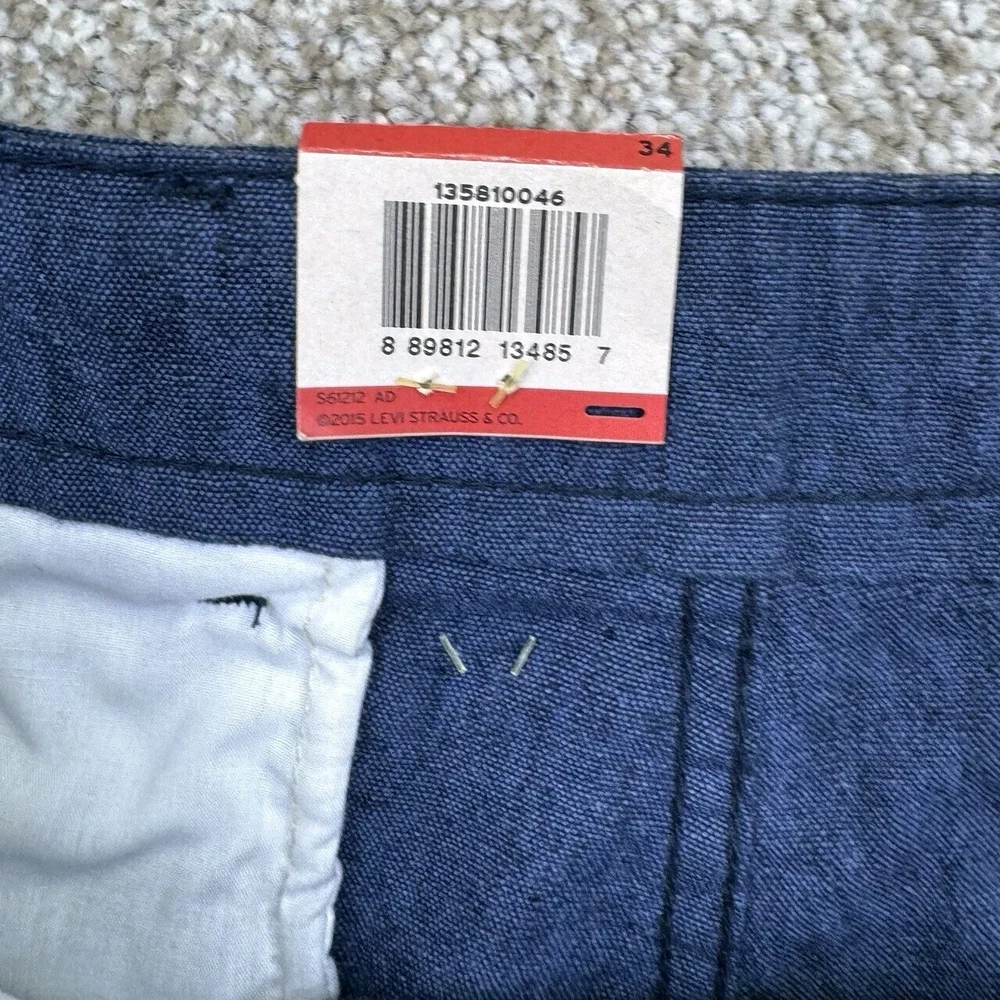 NWT Levis Linen Blend Snap Cargo Shorts Mens Size 34 Blue Belted Falls Below Knee. Condition is New with Tags. Shipped Standard. See Photos With Measurements.