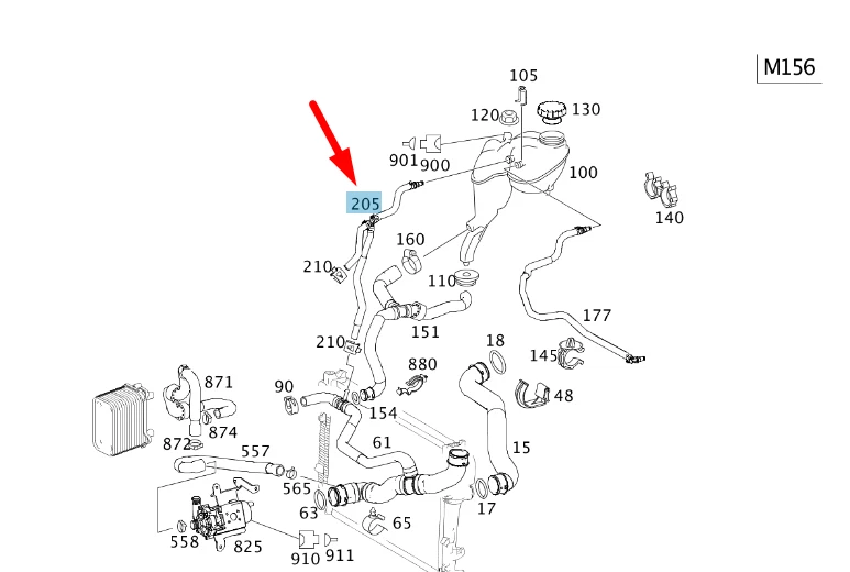NEW MB S W221 EXPANSION TANK AND RADIATOR VENT TUBE A2215011525 ORIGINAL