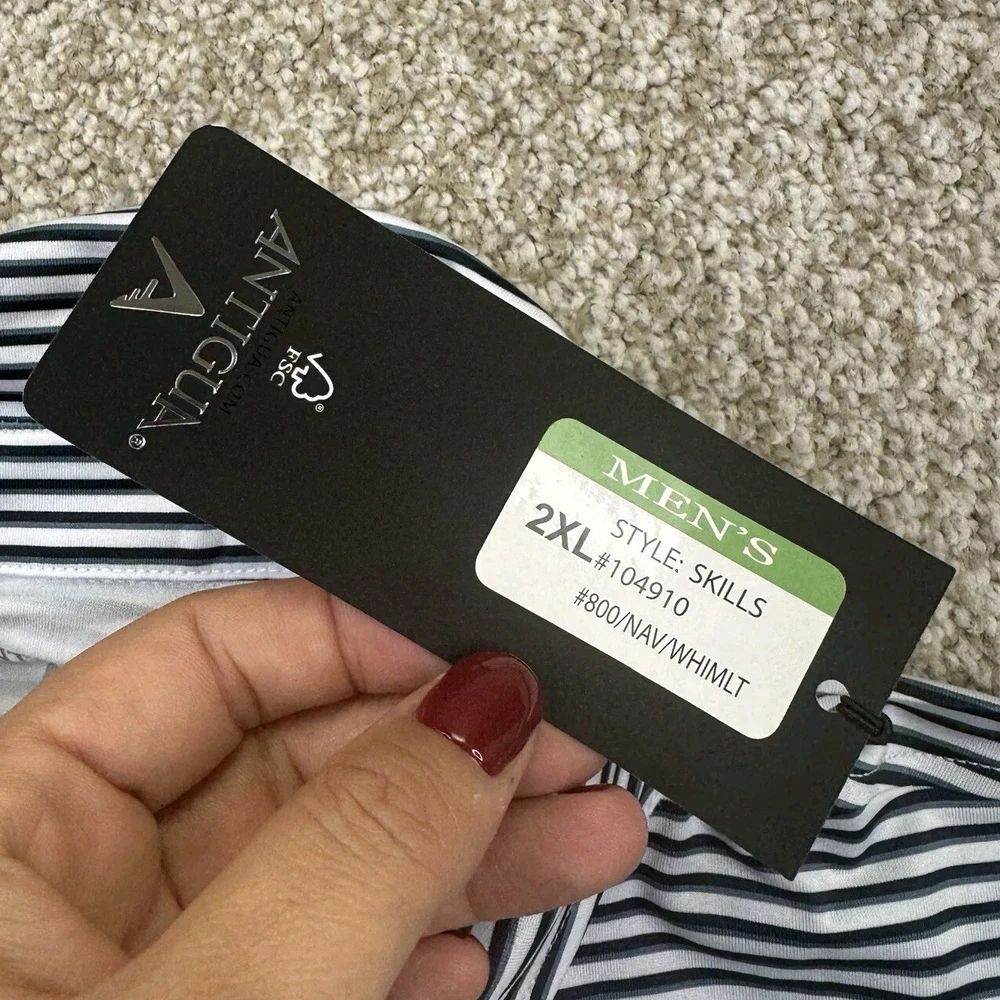 NWT Michigan Wolverines Polo Shirt Mens 2XL White Blue Stripes Short Sleeve Antigua. Condition Is New With Tags. Shipped Standard. See Photos With Measurements.