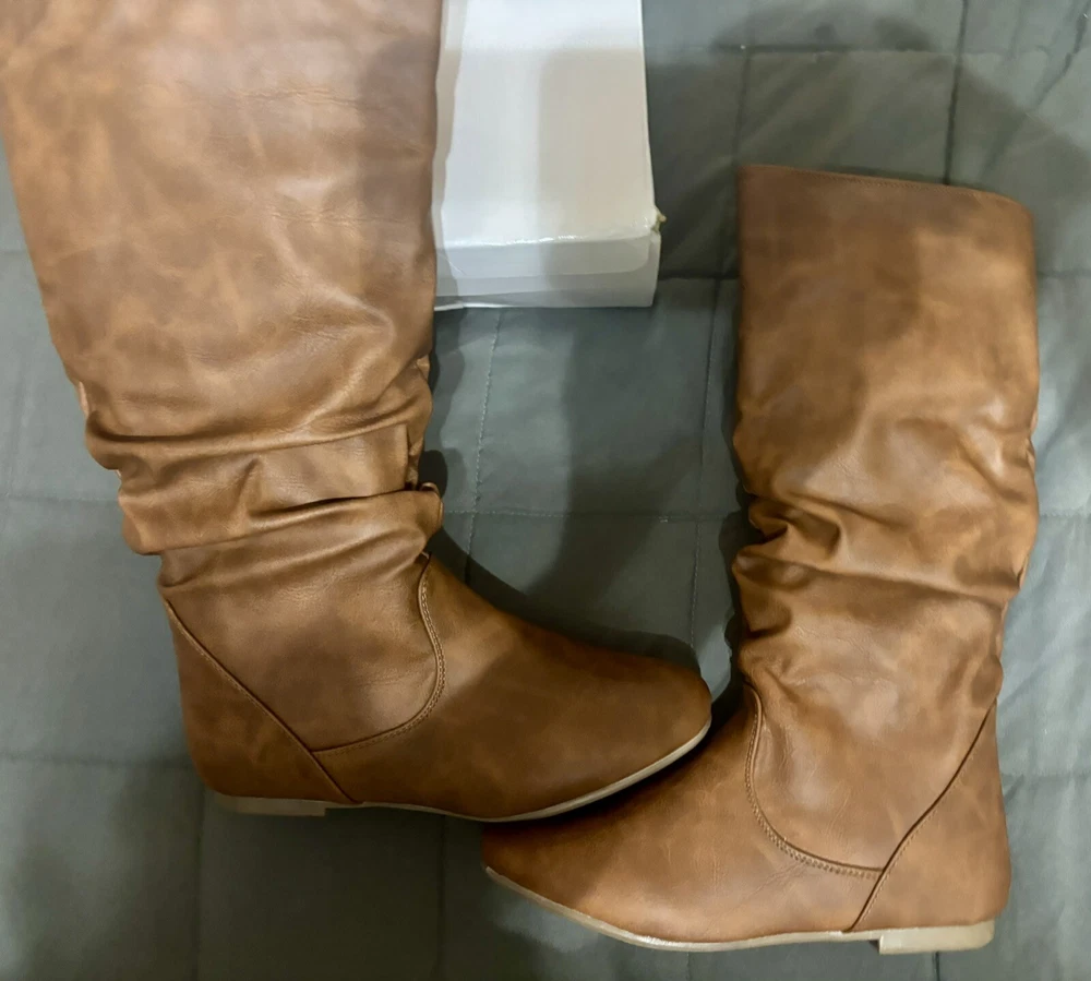 NEW Minimalist Side Zipper Slouchy Fashion Outdoor Brown Boots Size 6.5 EUR 37