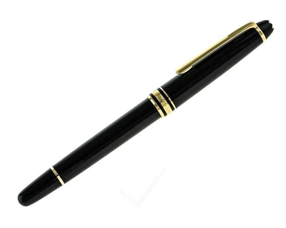 Montblanc Gold Finish Meisterstuck Classique Luxury Rollerball Pen 163 - NEW Brand New and 100% authentic, 2 years warranty. Classic black resin, platinum plated appointments, complete with box and papers, available for immediate shipping. Free shipping by USPS for all US address. Description/Specifications: · Color: Black & Gold · Highlight: "MONBLANC GERMANY" perfect german quality and design + Indentcode "GERMANY" imprint on the clip · Size capped: approximately 13.6 cm / 5.4" · Country of manufacture: Germany · Condition: Brand new This pen will be shipped in its Montblanc gift box with its Service Guide booklet.