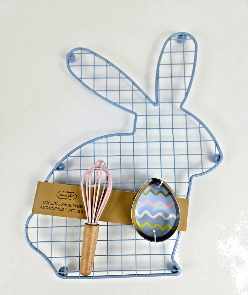 NEW Mud Pie Bunny Shaped Blue Cooling Rack Cookie Cutter Pink Whisk
