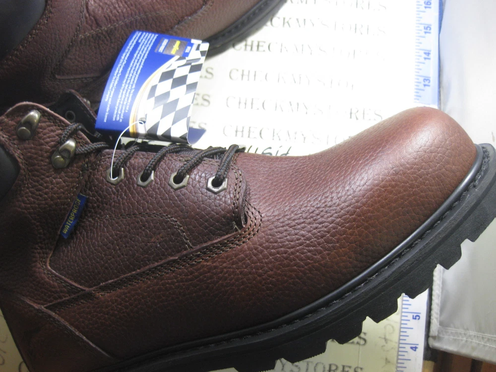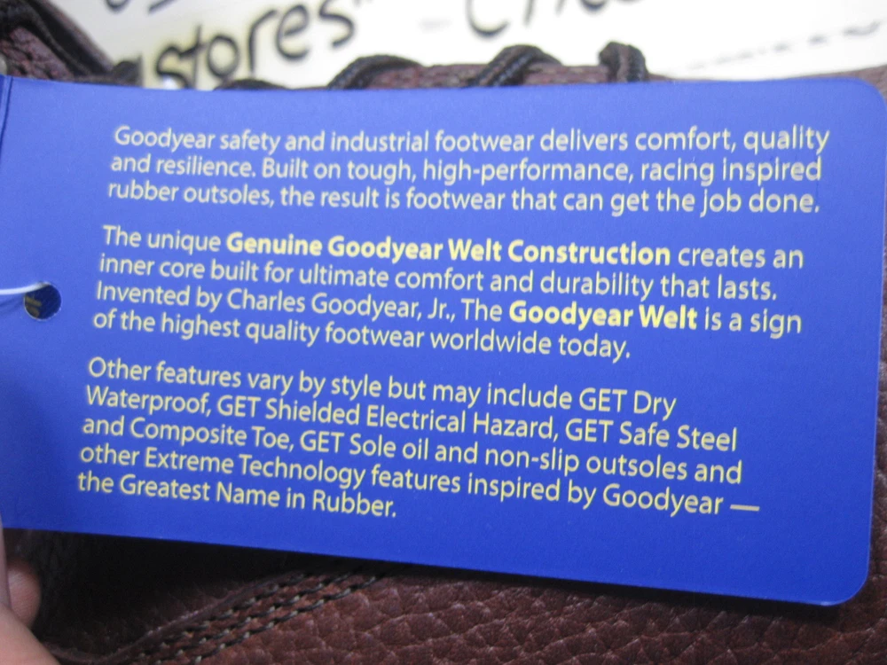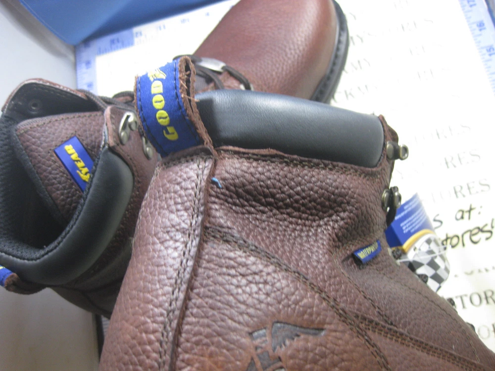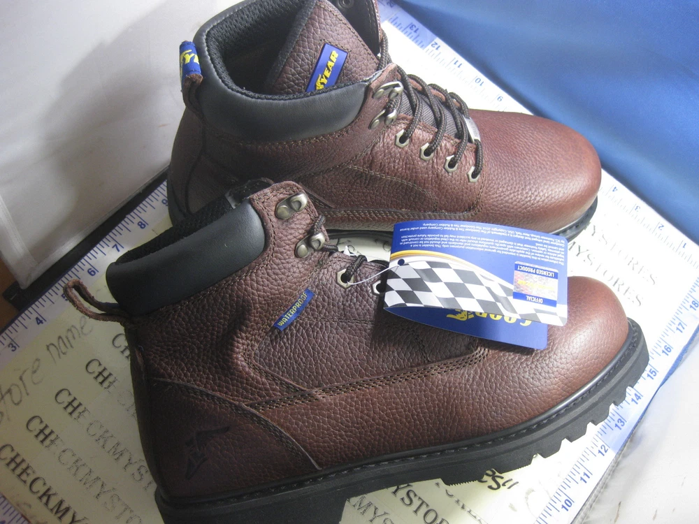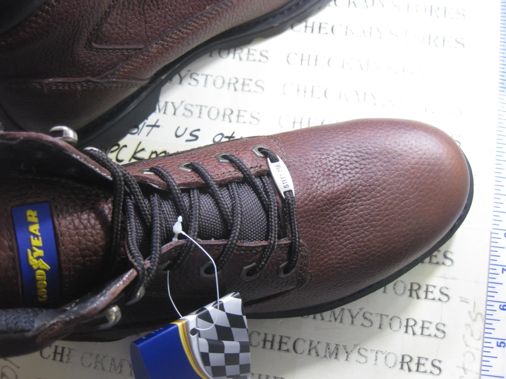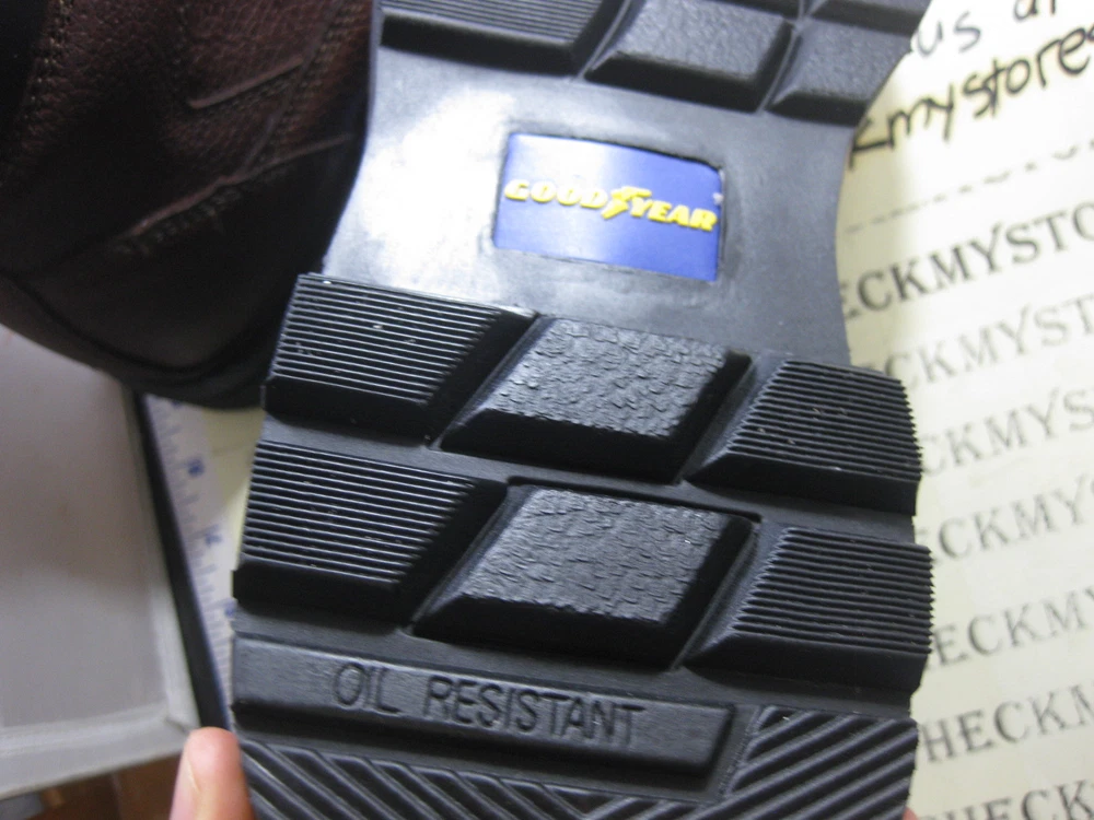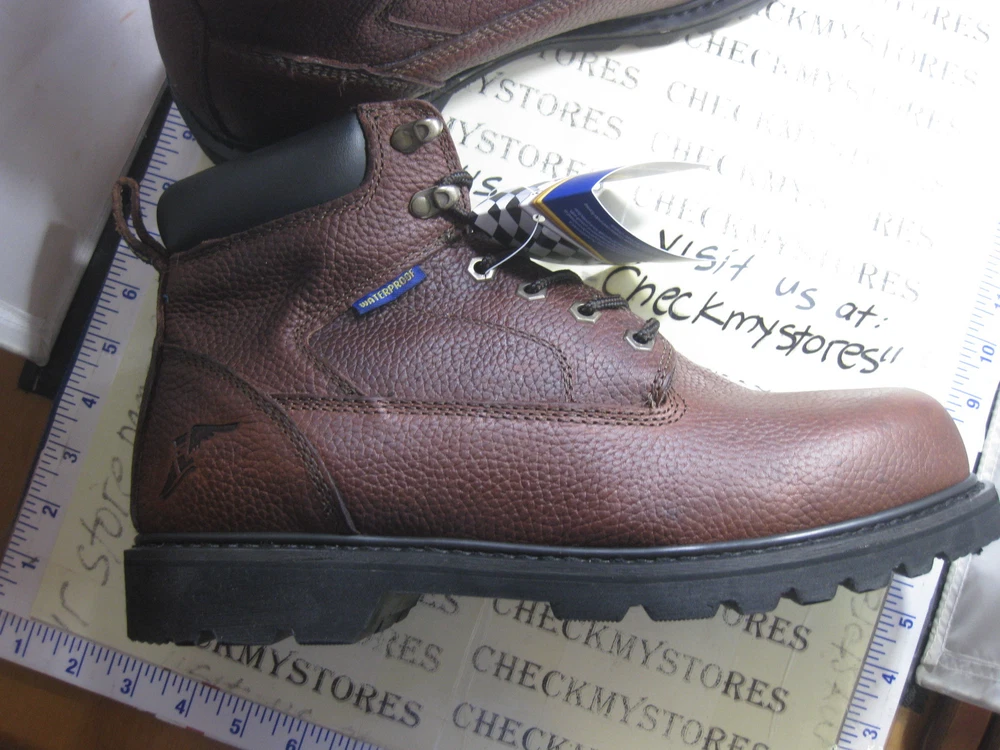NEW Good Year 6" Work Boot EH Safety Toe Waterproof GY6363 Traction Men's Full Grain Waterproof safety Toe Work Boots Leather Prmium work casual heavy duty boots Boot LEATHER BOOTS PREMIUM SHOE MAKER SINCE SIZE :PLEASE SELECT AT TOP Width: M MEDIUM Brand New, Never Used, 100% authentic. GOODYEAR men's AUTHENTICITY GUARANTEED Brand New STYLE# GY6363 CONDITION BRAND NEW FIRST QUALITY WITH ORIGINAL TAG,COMES WITH ORIGINAL BOX. COLOR DR BROWN LEATHER MSRP SIZING CHART USA PLEASE SELECT AT TOP EUROPE UNITED KINGDOM CM DESCRIPTION: PREMIUM Men's Full Grain Good Year 6" Work Boot EH Safety Toe Waterproof GY6363 Traction USAGE: PREMIUM WORK,CASUAL,COLD WEATHER,,UNDER JEANS,Casual footwear FEATURES: GENUINE FINEST LEATHER WATERPROOF WORK BOOTS SUPERIOR LUXURY DESIGN AND QUALITY This Men’s Good Year 6" Safety Toe Work Boot Style #GY6363 The GY6363 is a 6-inch lace-up waterproof safety boot with durable and comfortable Goodyear Welt construction. EH protection against incidental electric contact certified to ASTM F2413-11. It features a removable molded comfort footbed with memory foam heel and metatarsal cushions. High-quality waterproof membrane keeps moisture out. Breathable, moisture-wicking, high-performance, abrasion-resistant lining offers all-day protection. Stabilizing anti-torsion shank. Full padded collar with mesh lining. Leather pull tab with woven cover. Additional Info Memory Foam , Safety , Waterproof , Cushioned , Breathable , Lightweight , Removable Footbed , Goodyear Welt , Moisture Wicking , ASTM , 6 Inch Tall - New: In Original Box QUALITY BOOT MAKER Visit My eBay Store: checkmystores UNIQUE DESIGN CHECKMYSTORES is proud to offer the JUSTIN BOOTS: IF YOU NEED MORE SIZE AND COLORS PLEASE CHECKMYSTORES IF YOU NEED MORE SIZE AND MODELS PLEASE CHECKMYSTORES, WE HAVE ALL BRAND NAME SHOES ALSO EUROPEAN STYLE SHOES . SHIPPING IN USA 48 STATES $9.95 Size PLEASE SELLECT AT TOP. Visit My eBay Store: checkmystores sku#10.5-7183//12-7184-5