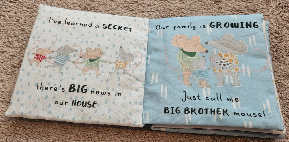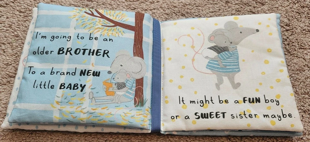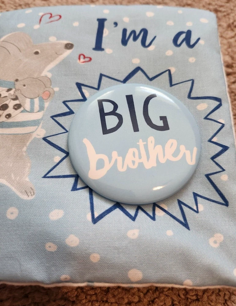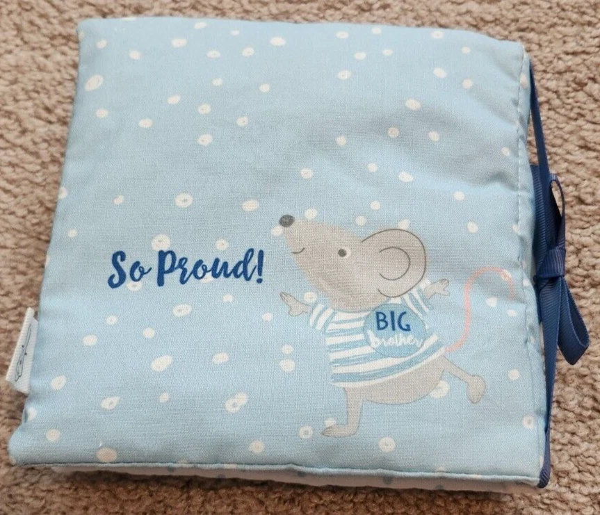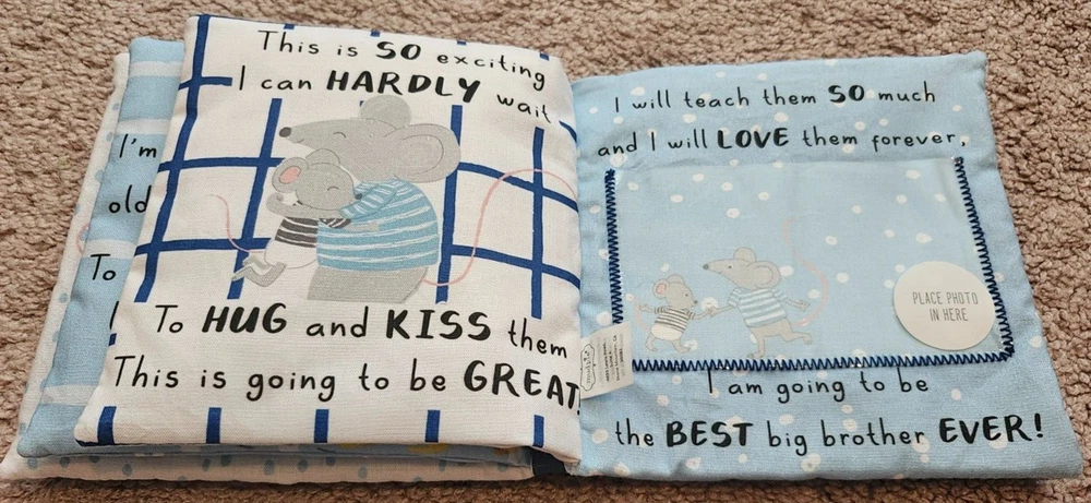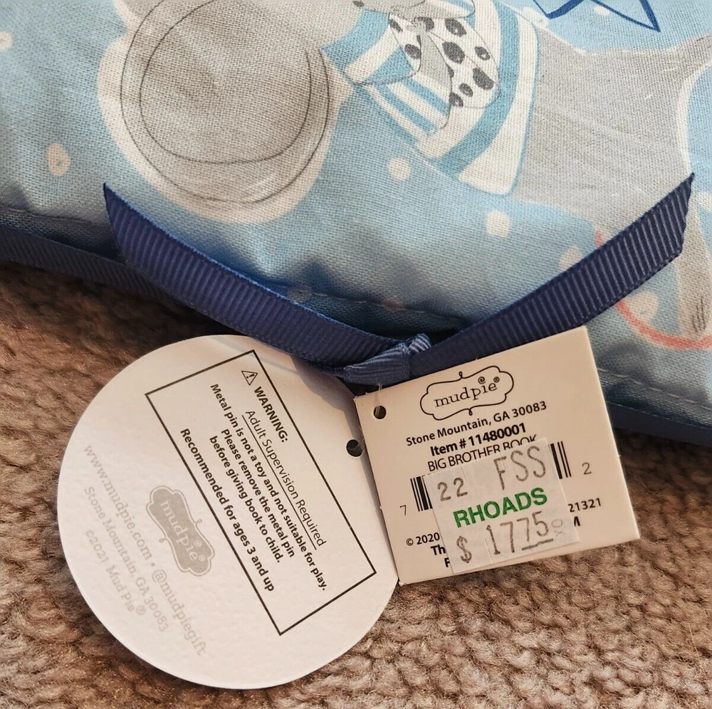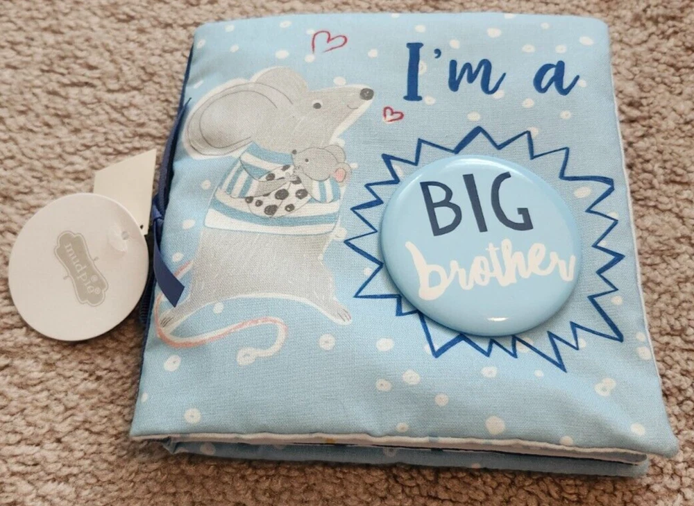 NEW NWT MUDPIE I'm a BIG BROTHER SOFT BOOK & PIN SET BABY BOOK BLUE MOUSE GIFT
