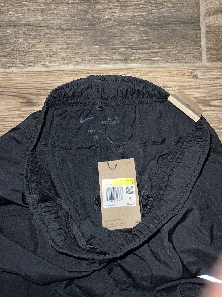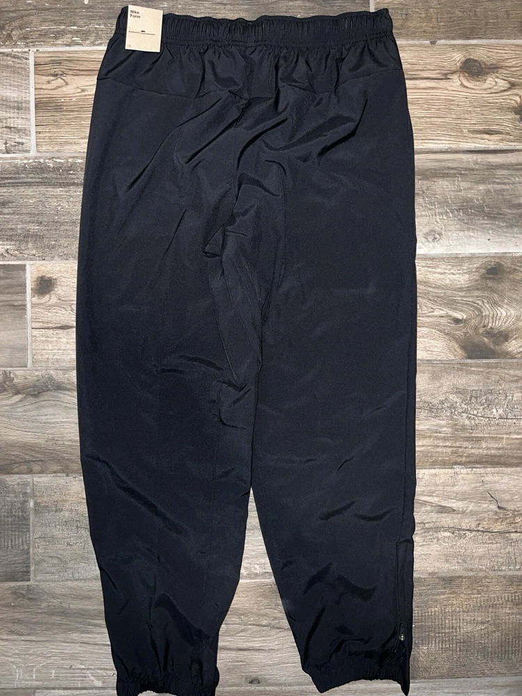 Crafted for the active individual, these Nike Form men's pants in size small offer a combination of style and functionality. The sleek black color and tapered design make them a versatile addition to any activewear collection. Their lightweight polyester fabric ensures comfort and ease of movement, perfect for gym training, cross-training, running, or casual wear. The pants feature a drawstring closure for a secure fit and are part of the Nike Dri-FIT product line, known for its moisture-wicking technology. With a 29-inch inseam and a regular fit, these pants are machine washable and are designed to cater to a variety of athletic occasions throughout the fall, spring, and winter seasons.