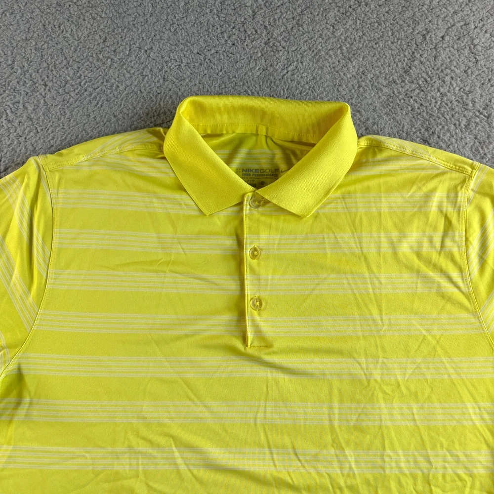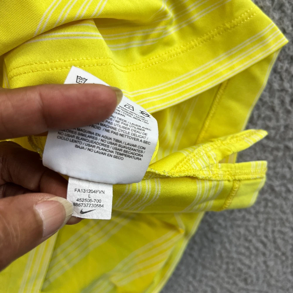 NEW Nike Golf Polo Shirt Mens Large Yellow Striped Tour Performance Dri-Fit Condition: New without tag. Very good condition. Please see all photos for condition and measurements. Please let us know if you have any questions. Thanks for shopping with us.