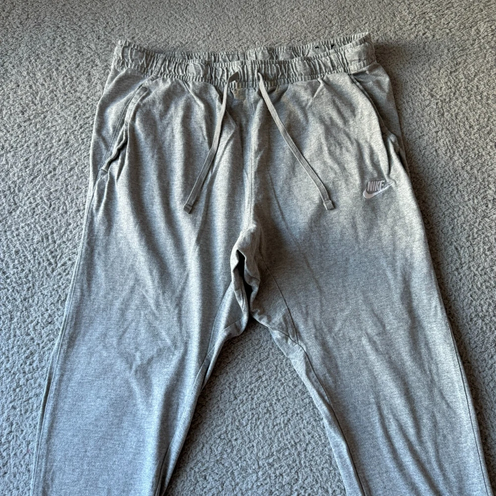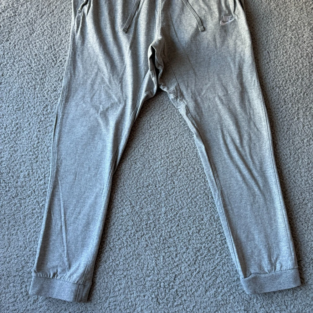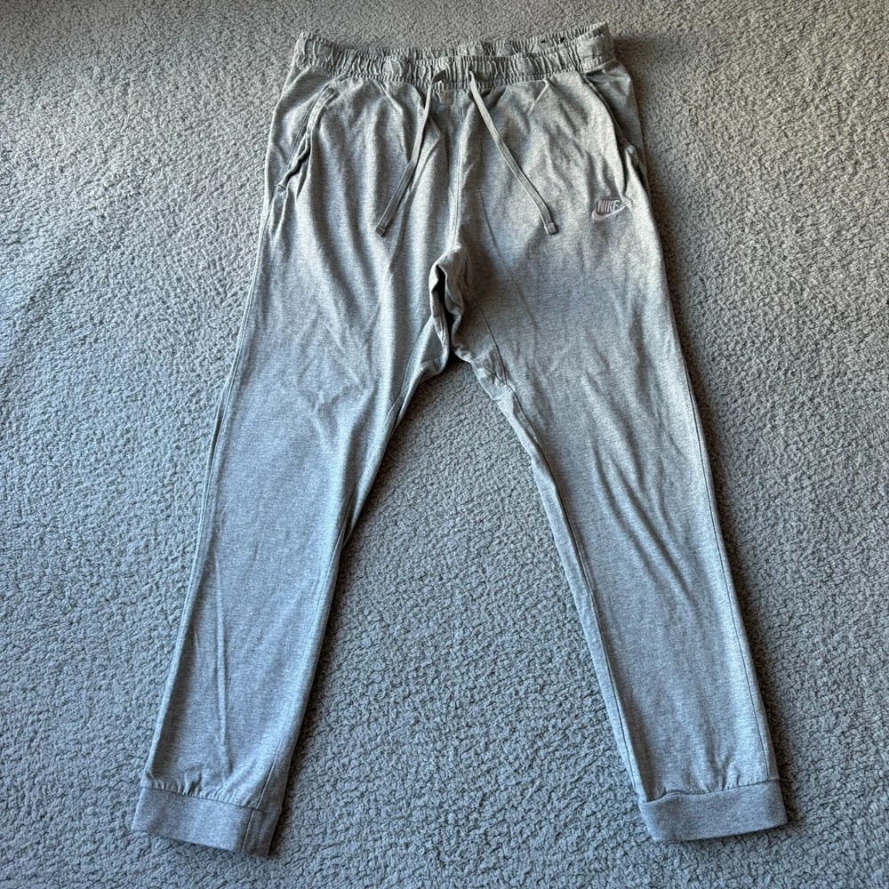 Theme: Athleisure, Outdoor, Sports Size Type: Regular Performance/Activity: Bodybuilding, Cheerleading, Cross Training, CrossFit, Cycling, Dance, Driving, Everyday, Gym & Training, Running & Jogging, Soccer, Walking Department: Men Occasion: Activewear, Casual, Travel Season: Fall, Spring, Winter Style: Jogger Fit: Regular Features: Comfort, Elastic Waist, Pockets, Drawstring Vintage: No Waist Size: 32 in Seller Notes: “New without tag. Good condition. Please see all photos for condition and measurements.” Fabric Type: Knit Inseam: 28 in Color: Gray Size: XL Brand: Nike Closure: Drawstring Pattern: Solid Type: Pants Material: 100% Cotton Leg Style: Tapered