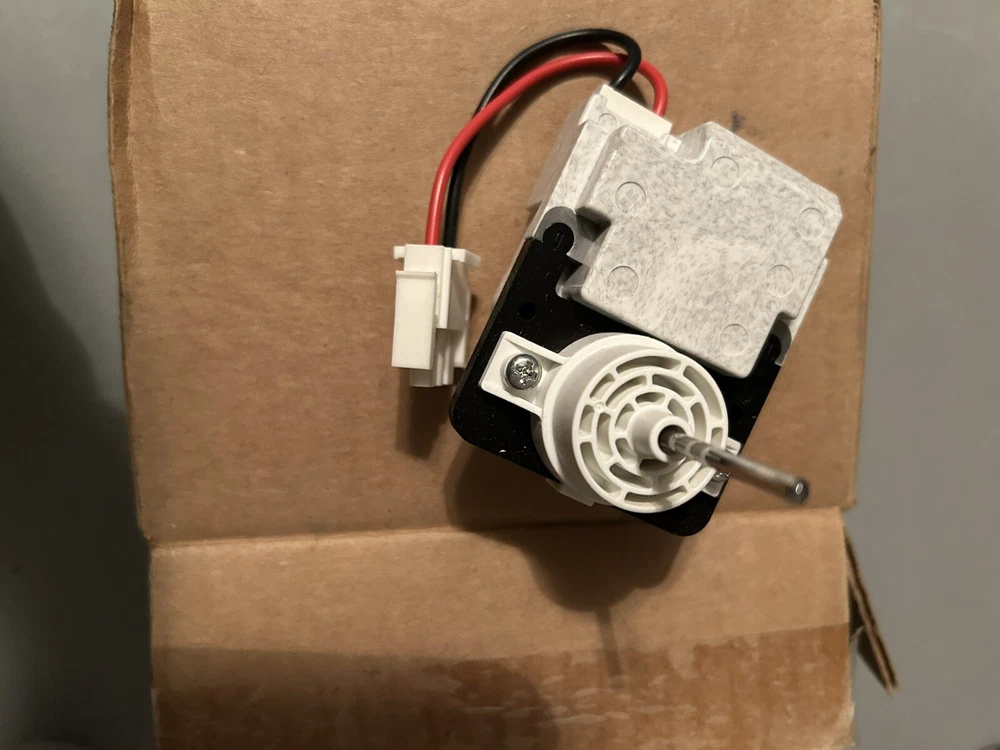 NEW “OEM” FRIGIDAIRE REFRIGERATOR EVAPORATOR FAN MOTOR #242077705. REPLACES 242077701, 242077702, 242219201, 5304514392. Box was opened for photos