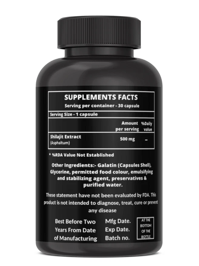 Heroot 30 SOFT GEL Capsules Shilajit is a extract that is pale-brown to blackish-brown in color Shilajit contains an antioxidant known as fulvic acid. It can function as an antioxidant to improve your body's immunity and memory, an anti-inflammatory, an energy booster, and a diuretic to remove excess fluid from your body. Shilajit Capsules might be beneficial in improving exercise performance by enhancing fatigue-related metabolic characteristics and increasing muscle mass and strength. Key Ingredients: Shilajit Key Benefits: Testosterone And Male Reproductive Health Enhance Stamina, Vigour, And Vitality Promotes Overall Health And Well-Being Enhances Strength And Sexual Wellness Detoxification And Cellular Regeneration Enhanced Immune System Directions For Use: 1 serving daily or as directed by your Healthcare professional Eat Healthy, Exercise Regularly And Drink Lots Of Water Take Consistently For 60 Days Safety Information: Store in a cool dry place Keep out of reach of children If you are pregnant or lactating or prone to any food allergy or under any medical condition consult your healthcare practitioner before use. Disclaimer The above description is for information and knowledge purpose, not a healthcare professional advice. Please consult your doctor and/or pharmacist before you take this vitamin. Pregnant or lactating women, diabetics, hypoglycemics, and people with known medical conditions and/or taking drugs, should consult with a licensed physician and/or pharmacist prior to starting any supplementation program. The above statements have not been evaluated by the Food & Drug Administration. Shipping and Handling Shipping time will be 1 business day after the cleared payment We will ship by Indian Post service Shipment will take 15-30 days. Few more days for your local customs delay and formalities. For Express service additional charges will be applied. For any reason you wish to leave Negative or neutral feedback, Please contact us first and let us mutually resolve it. We care for your satisfaction and will make sure that you are happy with the transaction to post us 5**** ratings in all areas. ***Customs Information*** Heroot will not be liable for packages refused or held by customs for delivery. We request that you contact customs office and ask about import regulations and restrictions before placing your order. It is importsnt for you to become familiar with customs policies for your specific country before ordering. Customs regulations differ by country and not knowing their regulations can result in your order incurring high import duties, the delivery being delayed or even returned. Please check with your customs office to see if your country permits the shipment of the products you are planning to order from us and if any additional licenses or permits are needed. Please note: if your order is returned to us due to banned/ restricted products policy, a wrong address, refusal to pay customs fees, refusal to accept the order or because no one was there to accept the delivery of your order, we will refund your order as follow: you will be refunded the total amount of the order, minus the original shipping charge.