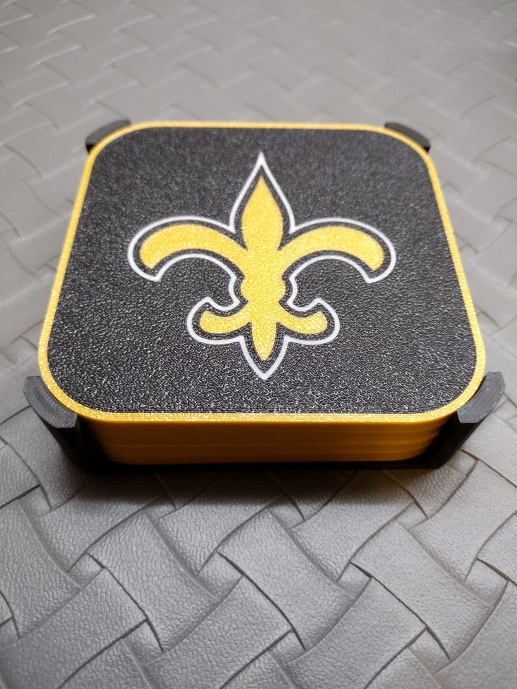 Item Length: 3.5" Number of Items in Set: 4 Item Width: 3.5" Brand: PR!NT3D Shape: Square or Rounded Type: Coaster Set Material: Plastic Sport: Football-NFL Occasion: Sports Character Family: Sports Theme: American Football Color: Multicolor Country/Region of Manufacture: United States Personalize: No