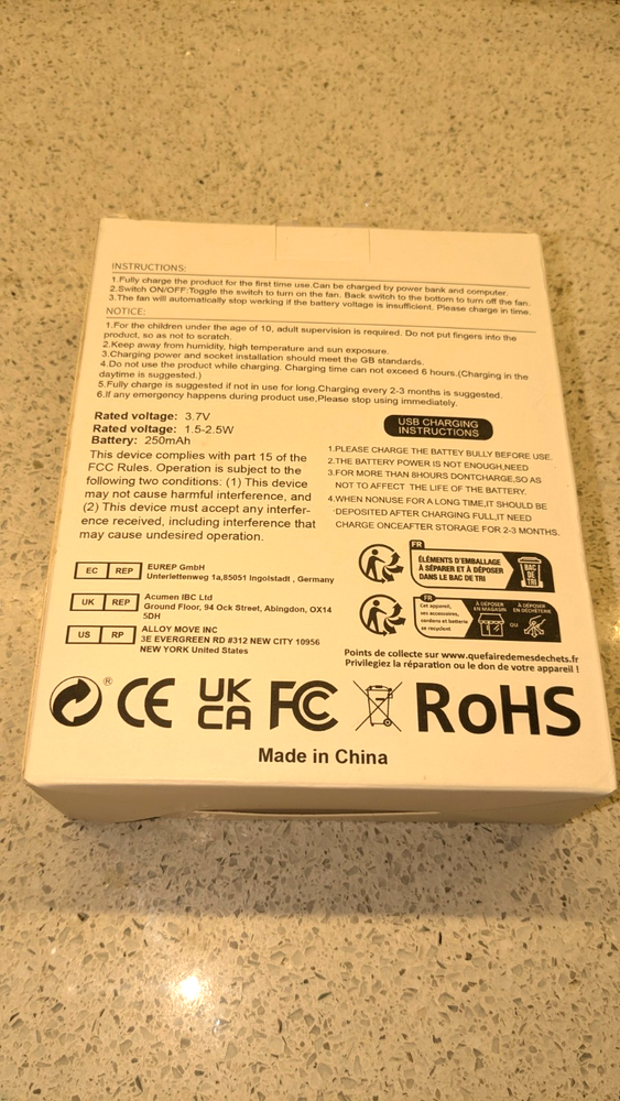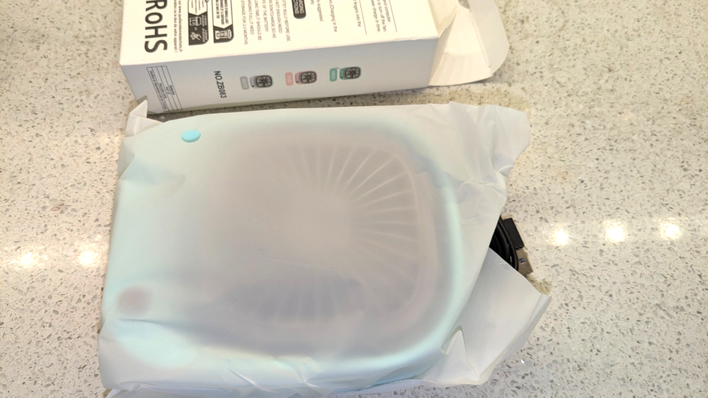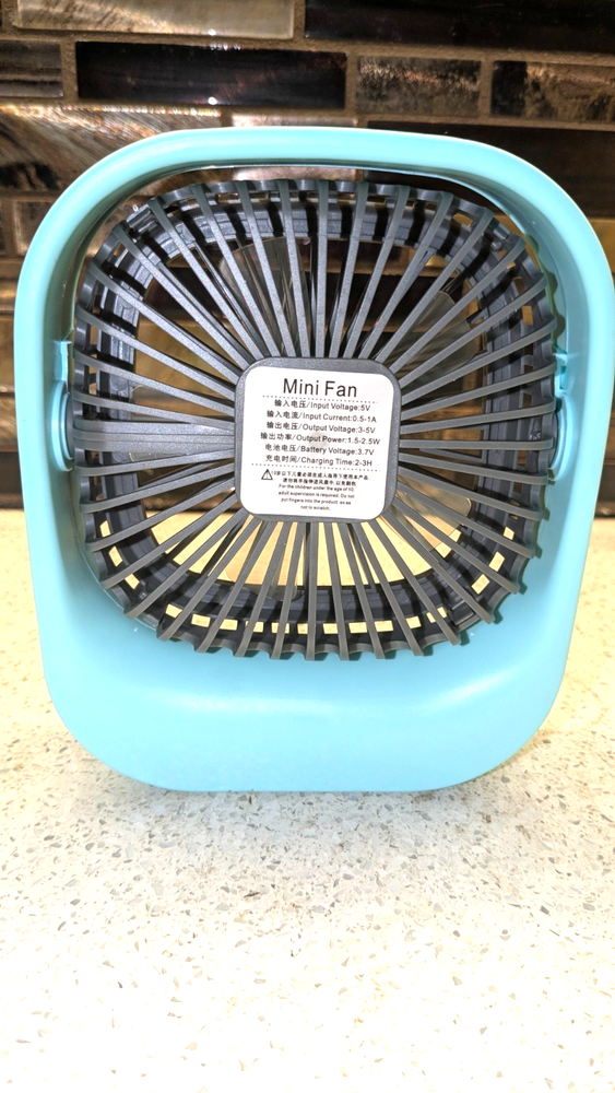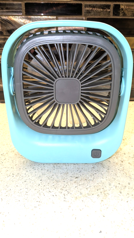 NEW Open Box-Unbranded Portable Light Bue Desktop USB Rechargeable Mini Fan. This mini fan is portable and USB rechargeable, and is designed for both handheld and desktop use. It features a square, compact design with a stable base that allows it to stand firmly on a desk. It is small enough to fit in a handbag or backpack for travel. The fan has a built-in rechargeable battery and typically charges via a standard USB cable. It can work when connected to a laptop, power bank, or a 5V output adapter. It is designed for low noise operation, suitable for use in an office, dormitory, or during study sessions. Shipment via USPS Ground Advantage Local pickp os also available.