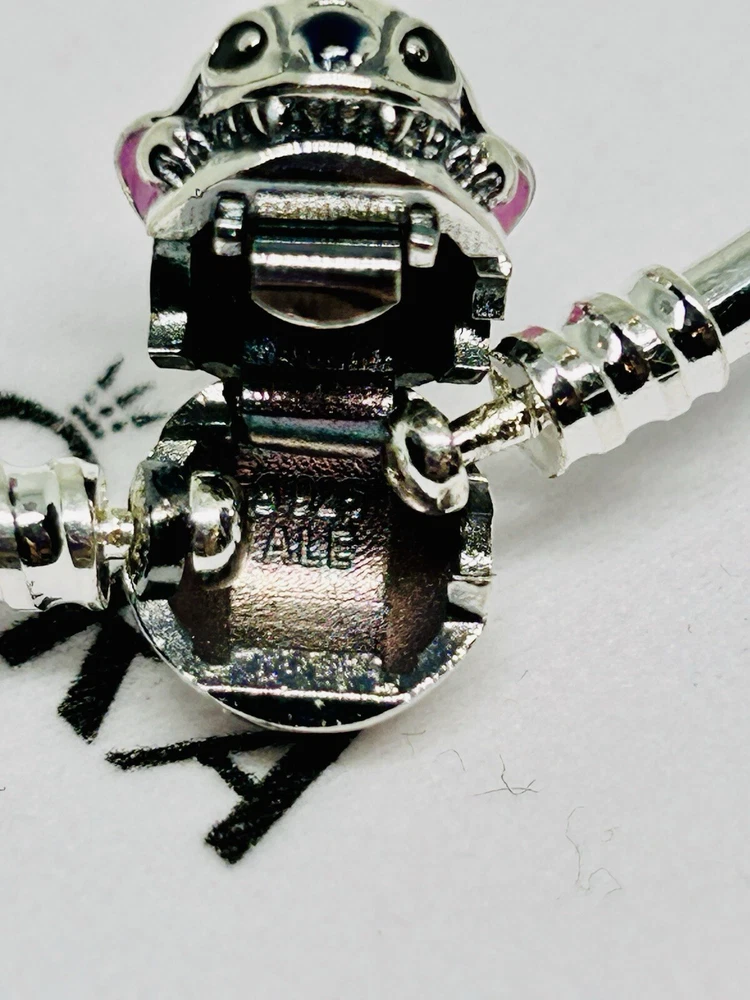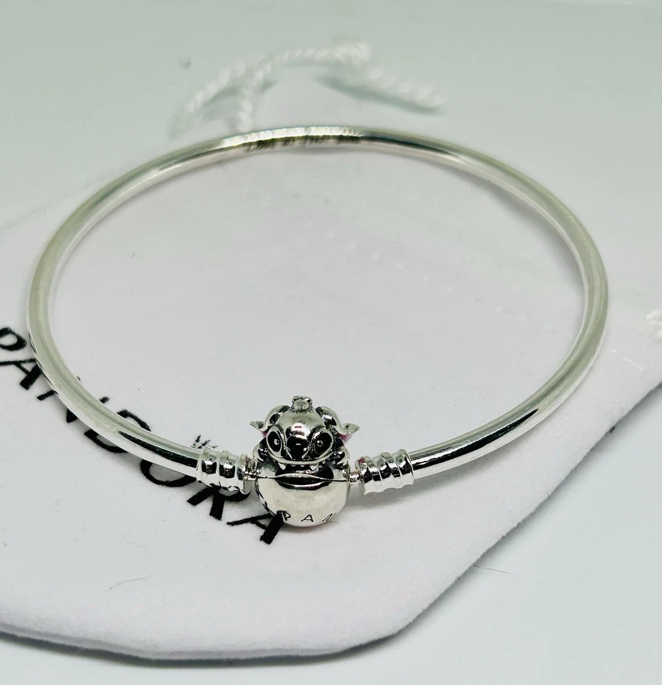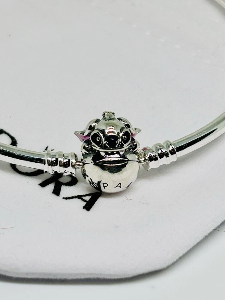 NEW PANDORA 591683C01 925 Silver Disney Stitch Biting Clasp Bangle Bracelet size 21 cm Says “Love at first bite” S925 Sterling Silver ALE New with tag and dust bag