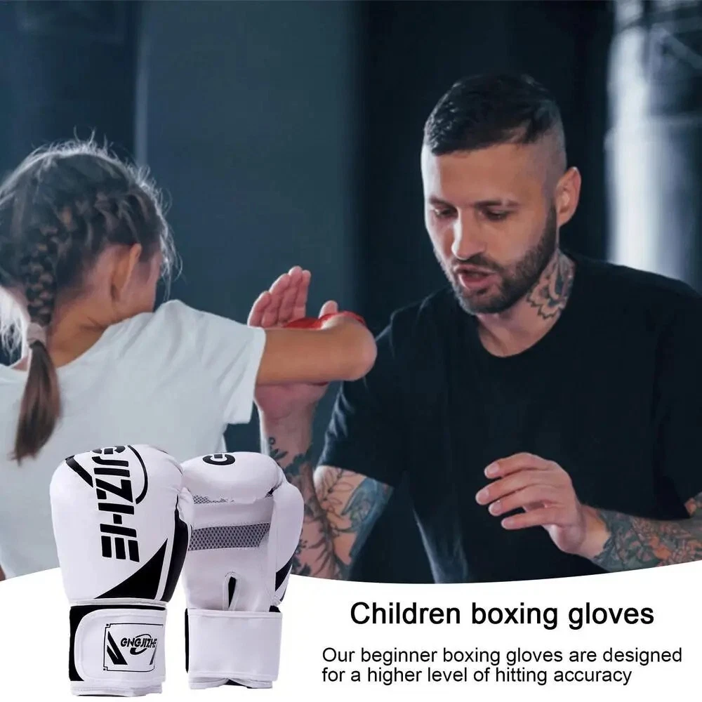 Welcome to the Fit N Fast Store. NEW PU Kids Boxing Punching Gloves For MMA Martial Art Taekwondo Karate Training Description: 1. Ideal for Muay Thai, Kickboxing, and gym training. 2. The firmness helps with shock absorption. 3. Aids in hard training and is recommended for children under 14. Specification Product Name: Boxing Gloves Material: PU Weight: about 0.3 (kg) Applicable scenarios: fitness and body, extreme challenges, martial arts self-defense Color: black, white Size: 6-oz, 8-oz Packing List: 2pcs*Gloves Thank you for visit my store.