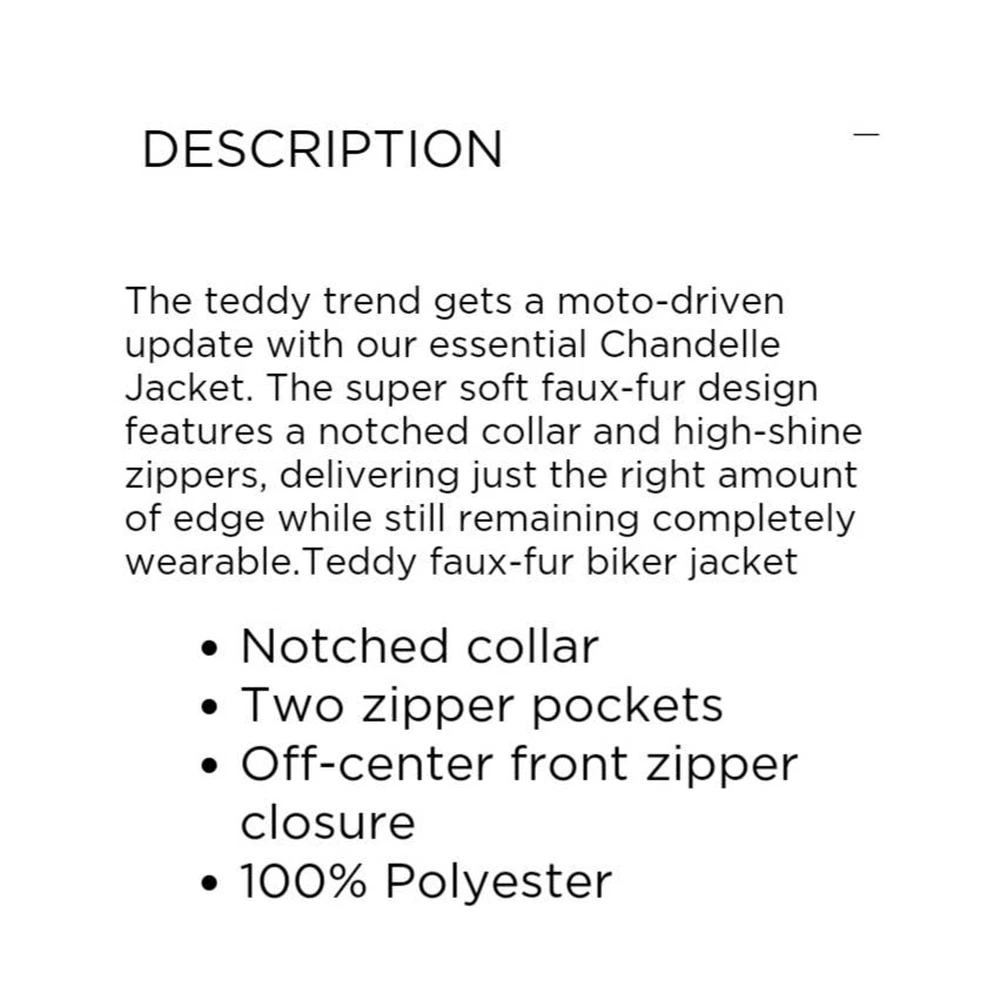 Super cute and furry! Pretty dusty rose moto style. New with tags. Silver Jeans Pink Teddy Biker Moto Jacket Coat Faux Fur Pink Sherpa Style: Chandelle Size Large Zip Pockets Retail:$89 Approximate specs in inches: Bust:46 Hem width:46 Back shoulder across:18 Sleeve:24 Length:23.5 Keywords: Furry Soft Sherpa Faux Shearling Vegan Girly Pastel Pink y2kstyle winteroutfit winterfashion winterjacket skioutfit coquette fairystyle Comfy Casual Warm Work School Boho Fairy Kawaii Event Guest Photo Holiday Vacation Ski Resort Gift Smoke-free/pet-free home Color/texture may vary due to lighting/devices Items may show wrinkling from packing/transit Packaging/tags may vary and/or have imperfections not affecting the item No holds, trades, private emails, modeling ID:QA/2