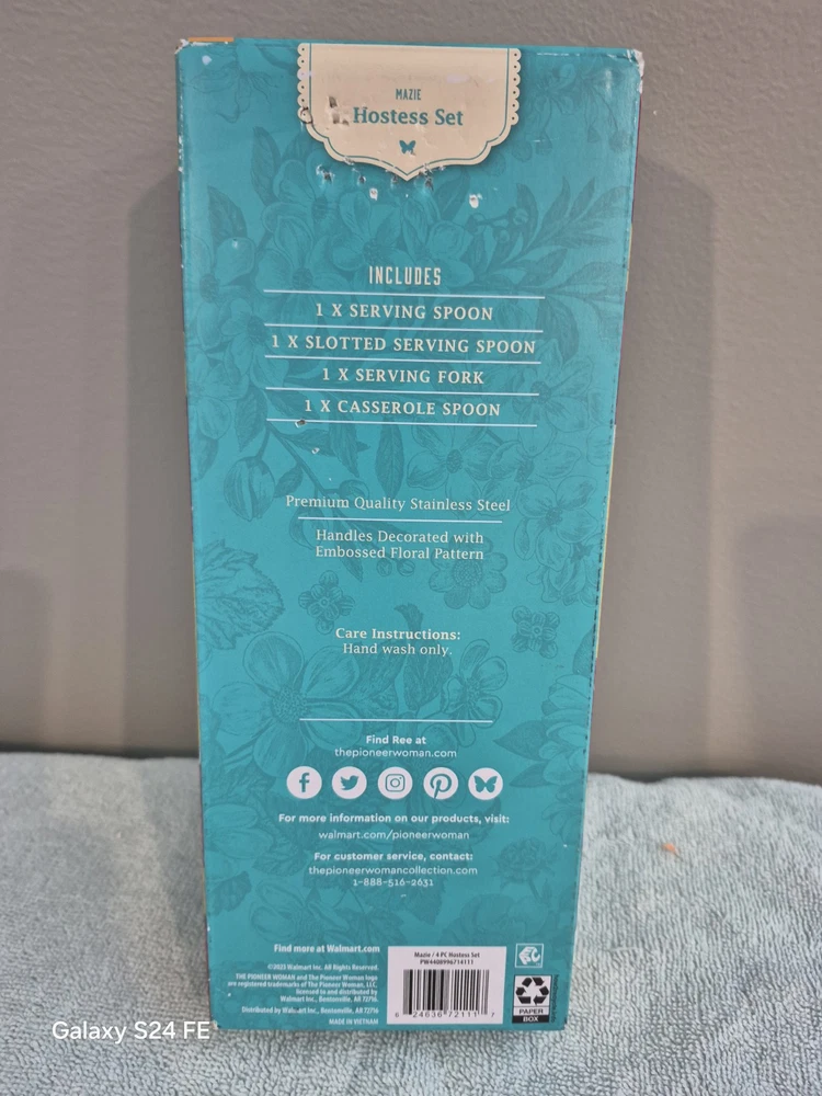Elevate your dining experience with the Pioneer Woman Gold Mazie Stainless Steel 4-piece Serving Set. With its stunning gold tone and delicate floral handle pattern, this set adds a touch of elegance to any table setting. Perfect for all occasions, it includes a serving platter, gravy boat, ladle, and sugar spoon, all crafted from high-quality stainless steel. Designed with the country style in mind, this set features the charming character Mazie, making it a great addition to your kitchen collection. The set is easy to handle and maintain, ensuring that you can enjoy its beauty and functionality for years to come. Add this beautiful serving set to your collection and make every meal a memorable one.