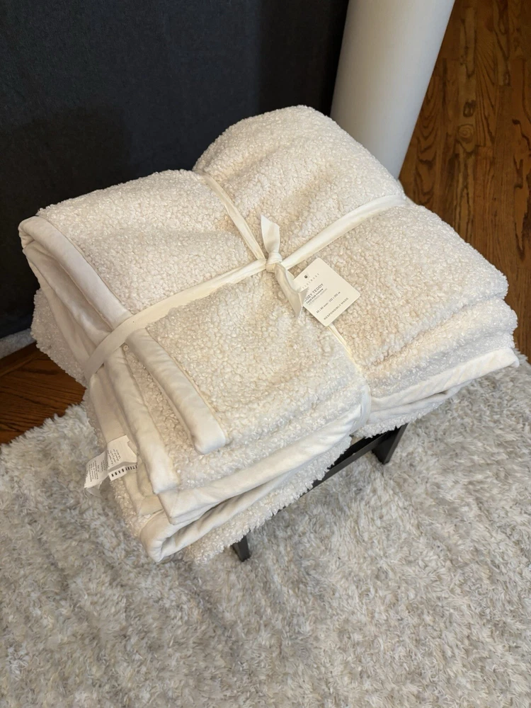 NEW Pottery Barn Cozy Teddy Faux Fur Throw, Oversized 60”x80”, Ivory New with tags Color: Ivory Size: 60”x80” Soft, plush, and cozy, these faux fur throws are a casual yet elevated addition to a modern layered sofa. Woven of 100% polyester. OEKO-TEX® STANDARD 100: tested for 1000+ harmful substances to keep you and your family safe.