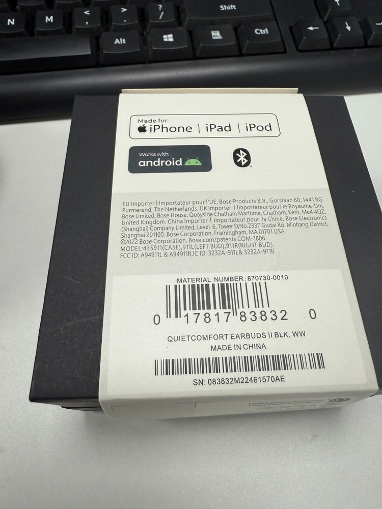 Type: Earbud (In Ear) Form Factor: In-Ear Only Microphone Type: Built-In Color: White Connectivity: Bluetooth Brand: Bose Model: Bose QuietComfort II Earbuds Wireless Technology: Bluetooth Number of Earpieces: Double Features: Wireless