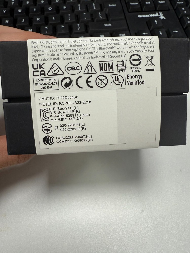 Dimensions / Weight Earbuds:1.2" H x 0.68" W x 0.88" D (0.22 oz each) Charging case:2.61" H x 2.34" W x 1.05" D (2.11 oz) USB cable:12" Additional Details Battery life: Up to 6 hours Earbud charge time: 1 hour Charging case charge time: 3 hours Quick-charge time: 20 minutes for 2 hours Battery charge method: USB-C Battery type (earbud): Lithium-ion Battery type (case): Lithium-ion Automatic on/off feature to preserve battery 4 microphones in each earbud Bluetooth range: Up to 30 ft Bluetooth version: 5.3 What's In The Box 2 Bose QuietComfort® Ultra Earbuds Bose Fit Kit: 3 pairs of eartips (small, medium, large) 3 pairs of stability bands (1, 2, 3) Charging case USB-C® (A to C) cable (12") Quick start guide Safety sheet