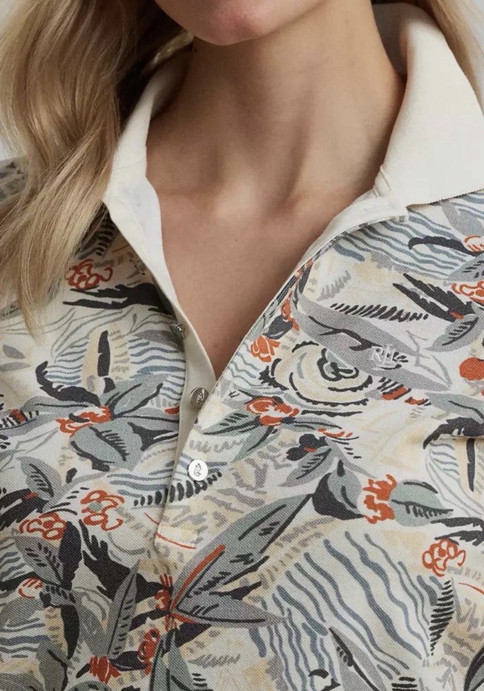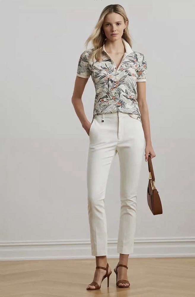 This product is a new Ralph Lauren Size 1X Print Stretch Piqué Polo Short Sleeve Shirt Top in multicolor. It features a slim fit with a regular size type, perfect for women looking for a stylish and comfortable top. The stretch fabric adds flexibility and ease of movement, making it a versatile piece for everyday wear. Whether paired with jeans for a casual look or dressed up with a skirt for a more formal occasion, this polo shirt is sure to make a fashionable statement.