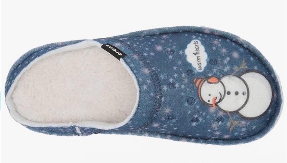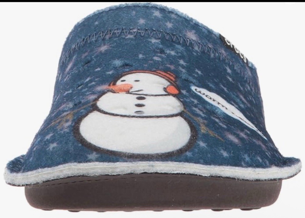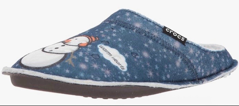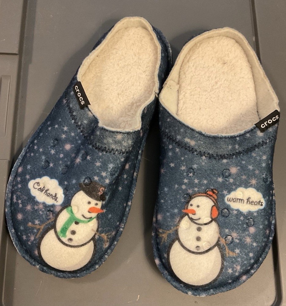 NEW Rare Crocs 204565 Classic Slipper Winter Snowman Blue Fuzzy Women's Size 7