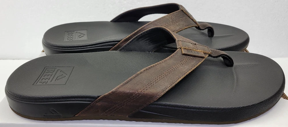 Listing is for (1) PAIR CUSHION BOUNCE PHANTOM LE BLACK WITH BROWN LEATHER SANDALS FLIP FLOPS from Reef. Men's size 10. Great for beach or pool. Brand new never worn. See pics. You are bidding on item shown. Pics of actual item for sale. NOT STOCK PHOTO. Secure packing to ensure safety of item(s). Buyer to pay s/h, please use calculator on auction page for shipping fees. All sales final as listed and pictured. No returns. Payment due within 24 hours of auction end in U.S. funds only. Questions welcome. Thanks for looking!