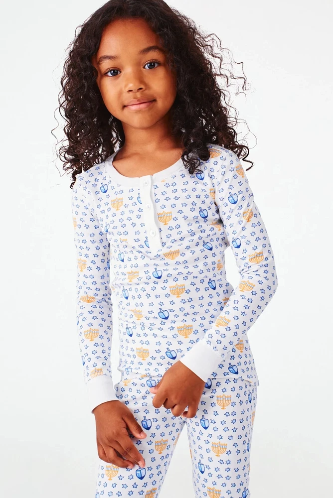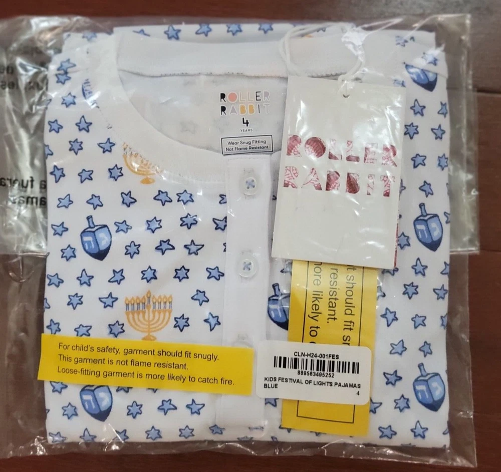 Brand new with tags Unisex Size 4 Free shipping Product Description For Hanukkah and beyond! Celebrate in the Festival of Lights Kids Pajamas, a super-soft two-piece PJ set in a holiday print. Kids will love the teeny tiny dreidel, menorah, and star print for eight crazy nights! 3 Button Henley Elastic Waist Super-Smooth Flatlock Seams Runs Small; Please Size Up Materials and Care 100% Pima Cotton Machine Wash Cold, With Like Colors Do Not Bleach, Tumble Dry Low (Line Dry Recommended) Imported Prewashed