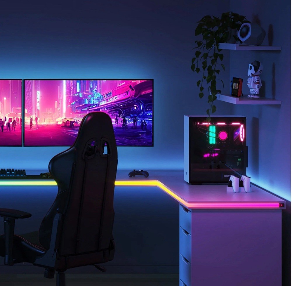 Take your gaming desk to the next level with the Govee Gaming Neon Rope Light. This light easily creates gorgeous lighting effects for more advanced game lighting. Segmented RGBIC Lighting: 42 controllable segments customize RGBIC lighting effects. Glare-free Diffusion: Diffused Glare-Free Game Lighting Unlike conventional RGB, Govee RGBIC Neon Rope Light produces a uniform luminous surface by utilizing back-facing LED emission, for seamless & glare-free game lighting. Cuttable: Can be cut on any of 12 specific cutting points and resized to ensure a perfect fit for most desks. AI Dreamview: Sync with Gaming Sync Box and Razer Chroma. Softer Neon Silicone Materials: More smooth and durable. Smart Activation: Simple voice commands via Alexa and Google Assistant.