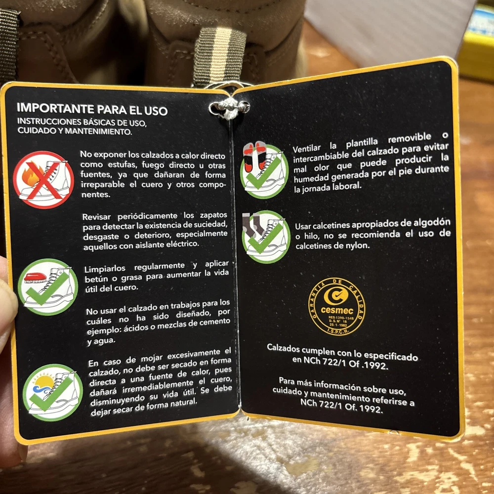 The product is a pair of SKECHERS men's work boots in size 8 with composite safety toe. They are khaki in color with a solid pattern, lace-up closure, and round toe shape. The boots feature air-cooled memory foam insoles for comfort, slip-resistant outsoles, and are oil resistant. They were manufactured in 2018 in China as part of the Skechers Memory Foam product line. Perfect for workwear in all seasons. International charges are the buyer’s responsibility. No international returns.