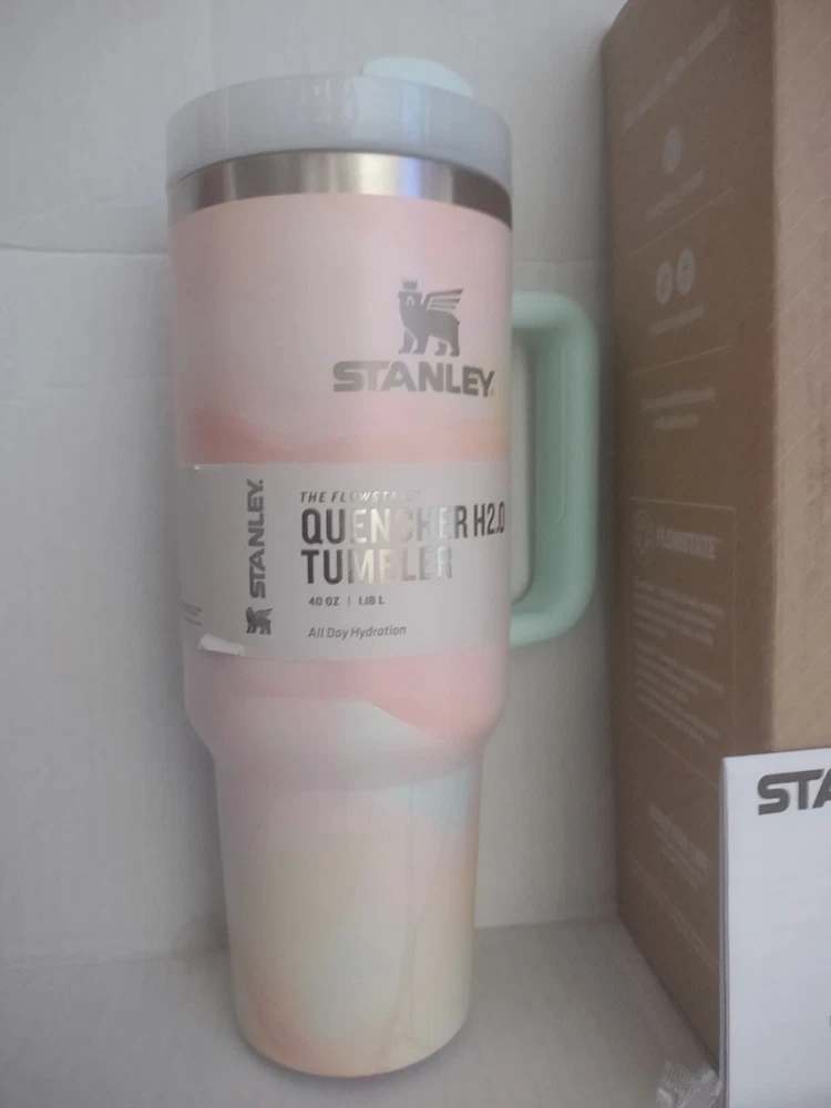 YOUR DREAM TUMBLER: Whichever way your day flows, the H2.0 FlowState tumbler keeps you refreshed with fewer refills. Double wall vacuum insulation means drinks stay cold, iced or hot for hours.40oz The narrow base on all sizes (except 64oz) fits just about any car cup holder, keeping it right by your side. ADVANCED LID CONSTRUCTION: Whether you prefer small sips or maximum thirst quenching, Stanley has developed an advanced FlowState lid, featuring a rotating cover with three positions: a straw opening designed to resist splashes with a seal that holds the reusable straw in place, a drink opening, and a full-cover top for added leak resistance. We’ve also included an ergonomic, comfort-grip handle, so you can easily carry your ice-cold water to work, meetings, the gym or trips out of town. EARTH-FRIENDLY DURABILITY: Constructed of 90% recycled BPA free stainless steel for sustainable sipping, the Stanley Quencher H2.0 has the durability to stand up to a lifetime of use. Eliminate the use of single-use plastic bottles and straws with a travel tumbler built with sustainability in mind. DISHWASHER SAFE: Spend less time hunched over the sink and more time doing the things you love. Cleaning your tumbler and lid couldn't be easier, just pop them into the dishwasher. Unlike plastic bottles that retain stains & smells, this metallic beauty comes out pristine Vacuum-Sealed Technology: The tumbler features a vacuum-sealed lid that creates a tight seal with the cup, preventing spills and leaks. U.S. buyer pays $8.00 shipping!