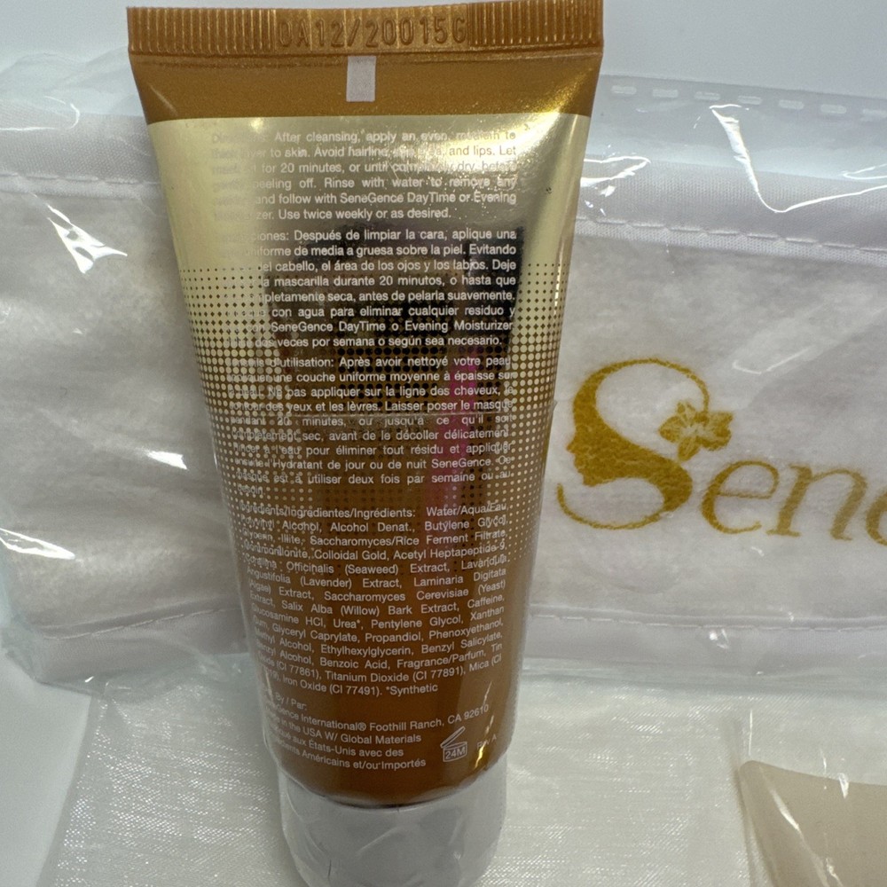 Set Includes: Peel-Off Mask Product Line: SeneGence Main Purpose: Anti-Aging Formulation: Mask Size: Full Size Brand: SeneGence Personalize: No Volume: 59 ml/2 fl oz Country/Region of Manufacture: Senegal Department: Unisex Skin Type: All Skin Types Type: Peel-Off Mask Ingredients: Colloidal gold Active Ingredients: Antioxidants & Botanicals Body Area: Face