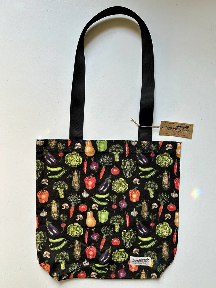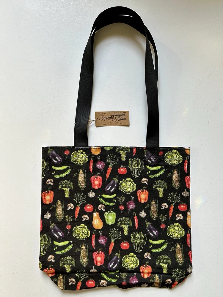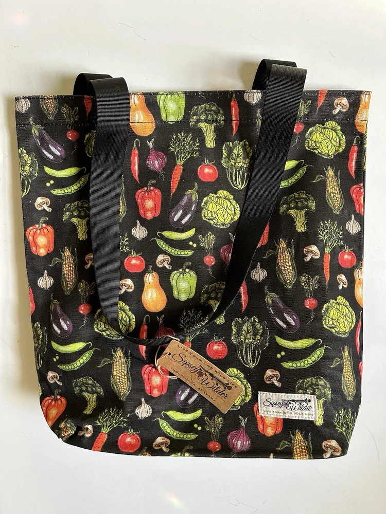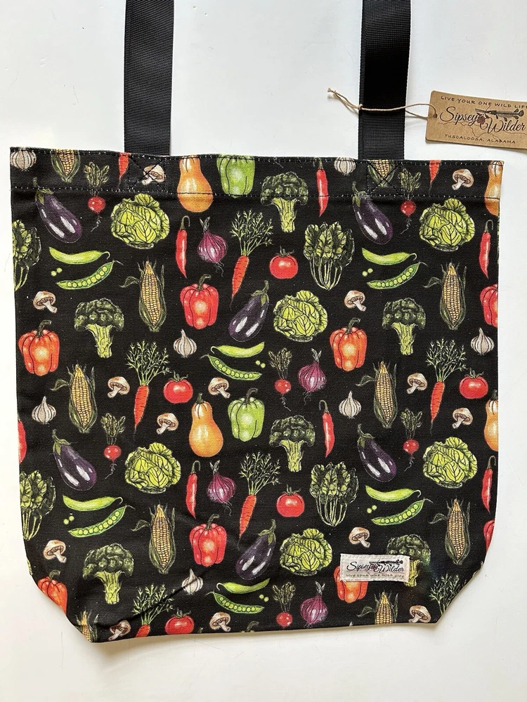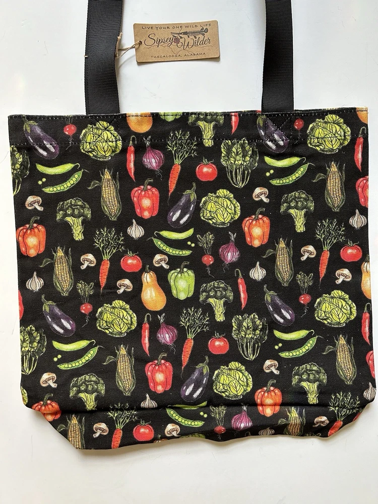 NEW! Sipsey Wilder “FRESH VEGGIES” TOTE BAG — Gusseted Cotton Canvas + Pocket
