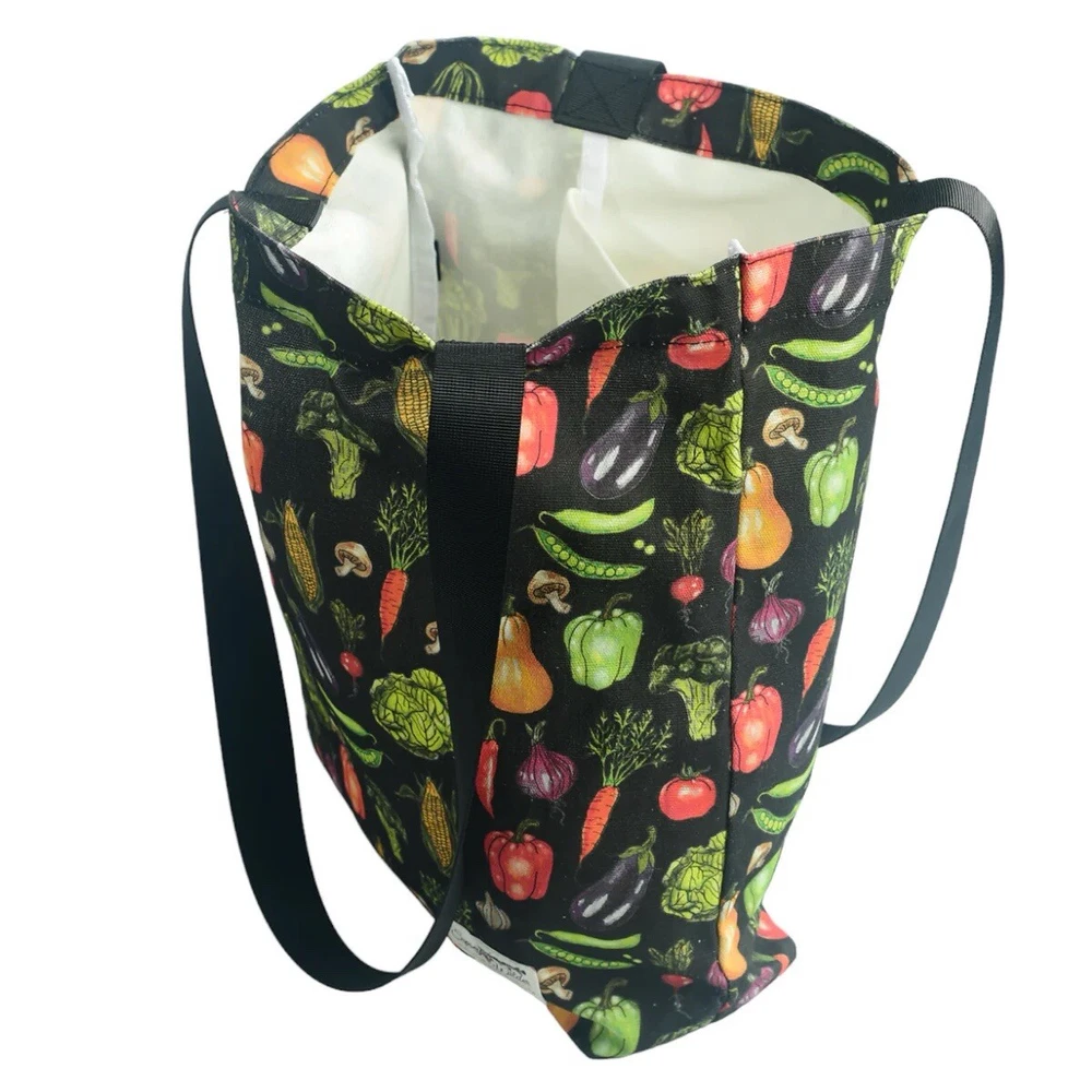 Style: Tote Handle/Strap Color: Black Country/Region of Manufacture: China Lining Color: Beige Bag Height: 15 in Shape: Square Features: Lightweight, Limited Edition, Packable, 100% Cotton, Beautiful & Fun Print, Gusseted for Extra Capacity, Extra Long Straps, Roomy Inner Pocket Model: Fresh Veggies Canvas Shopping Tote Strap Drop: 13 in Size: Medium Pattern: Fresh Veggies Exterior Color: Black Multi Product Line: Sipsey Wilder Shopping Tote Bags Lining Material: Canvas Handle/Strap Material: Canvas Brand: Sipsey Wilder Handle Drop: 13 in Bag Width: 15 in Accents: Black Straps, Logo Tag, Pocket UPC: Does not apply Theme: Nature, Rainbow, Plants, Self Care, Veggies, Vegetables, Cooking, Chef, Kitchen, Farmers Market Department: Unisex Adults Exterior Material: Cotton Canvas Bag Depth: 4 in Handle Style: Double Handles gtin13: Does not apply Fabric Type: Cotton Canvas