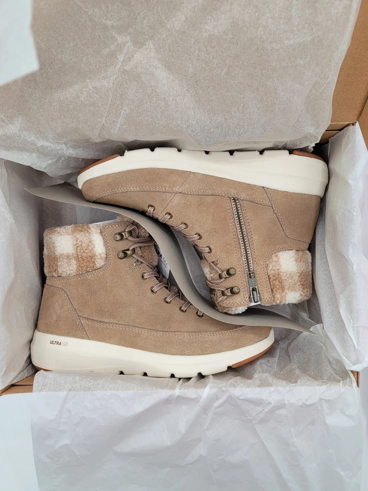 NEW Skechers Go Walk Boots Glacial Ultra Timber Tan Women's Timber Size 6.5
