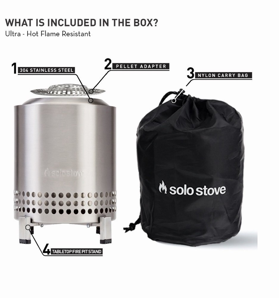 • ADORN YOUR TABLE TOP MEAL EXPERIENCE: Perfectly designed for backyard and urban settings, Mesa XL is the tabletop fire pit that brings warmth to the table. Inspired by our popular Solo Stove Fire Pits, the Mesa XL comes in a bigger size than our Mesa but it's just as portable and perfect for terraces, balconies and small gardens. • INCLUDES STAND FOR SAFE BURNING AND NYLON CARRY BAG: Give your fire pit a solid surface to rest on.Simply place Mesa in the center and light your fire. When you’re ready to pick up and go , fold in the legs and nest your stand inside Mesa's portable carry bag for compact storage and ultra portability. • DUAL FUEL ALLOWS VERSATILE USE: Made to run on more, Mesa’s capabilities go beyond just one fuel source. An included a pellet burner adapter gives you the choice to burn with pellets or any fuel on hand. With Signature 360° Airflow, Mesa’s flames will burn ultra-hot whether you’re burning pellets or wood. • INCLUDES STAND FOR SAFE BURNING AND NYLON CARRY BAG: Give your fire pit a solid surface to rest on.Simply place Mesa in the center and light your fire. When you’re ready to pick up and go , fold in the legs and nest your stand inside Mesa's portable carry bag for compact storage and ultra portability. • DUAL FUEL ALLOWS VERSATILE USE: Made to run on more, Mesa’s capabilities go beyond just one fuel source. An included a pellet burner adapter gives you the choice to burn with pellets or any fuel on hand. With Signature 360° Airflow, Mesa’s flames will burn ultra-hot whether you’re burning pellets or wood. • EASY TO LIGHT MINI PERSONAL FIRE BOWL: For the days you want an easy fire, go from box to burn in minutes.Simply place your fuel inside and light your firestarter to enjoy a warm fire from fireplace in just a couple of minutes, whether you’re a first timer or a pro. Simply add fuel as your fire dies down to sustain your smokeless Flame.