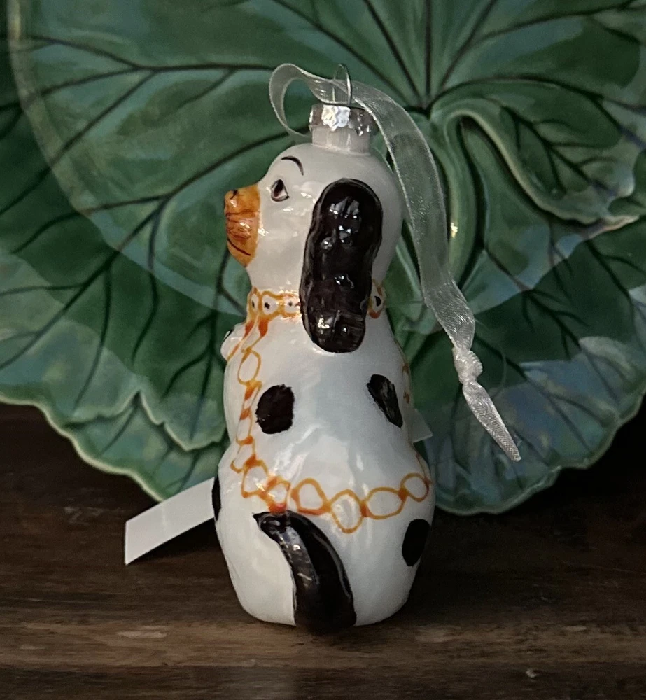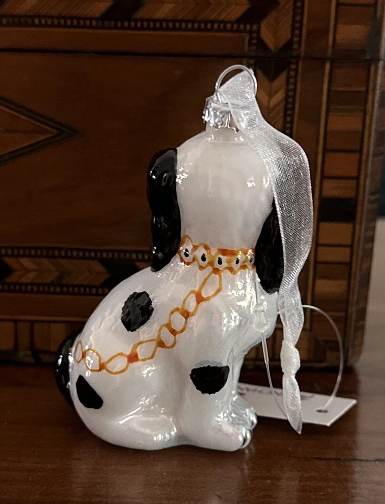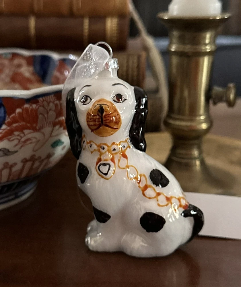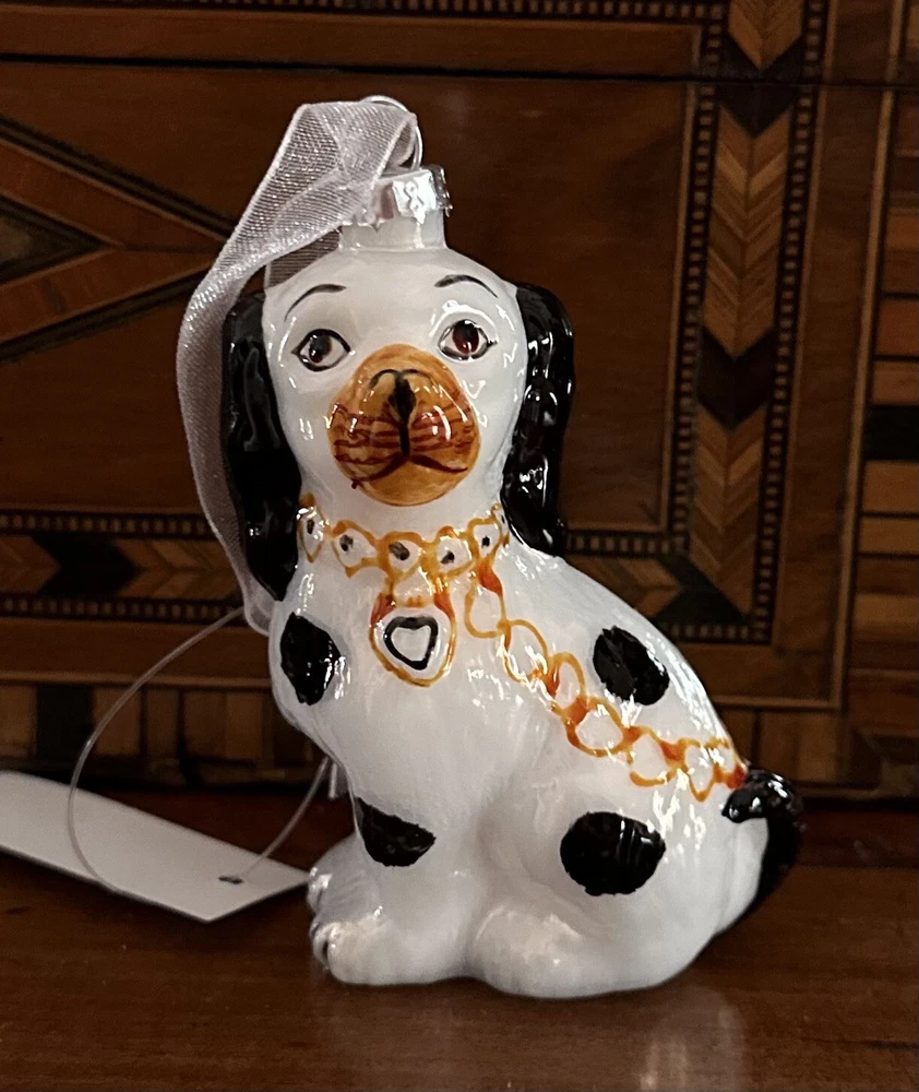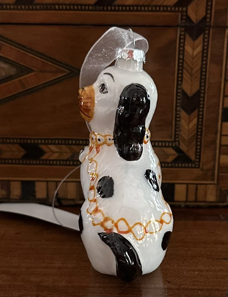 Antique Staffordshire Dog Ornament brand new height 3” plus hanger ring handpainted glass white & black similar ornaments are listed separately (see last pics) smoke-free & pet-free home I'm cleaning out my closets of gifts never given, items never used, clothes never worn, projects never done, etc. If interested, check out my other items. I definitely combine shipping!