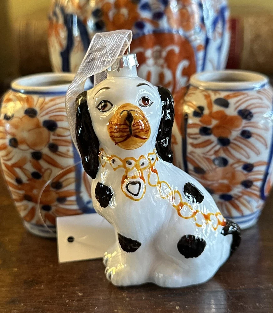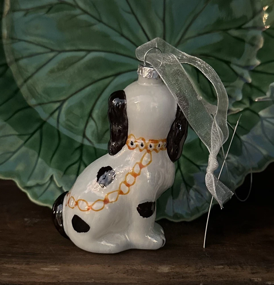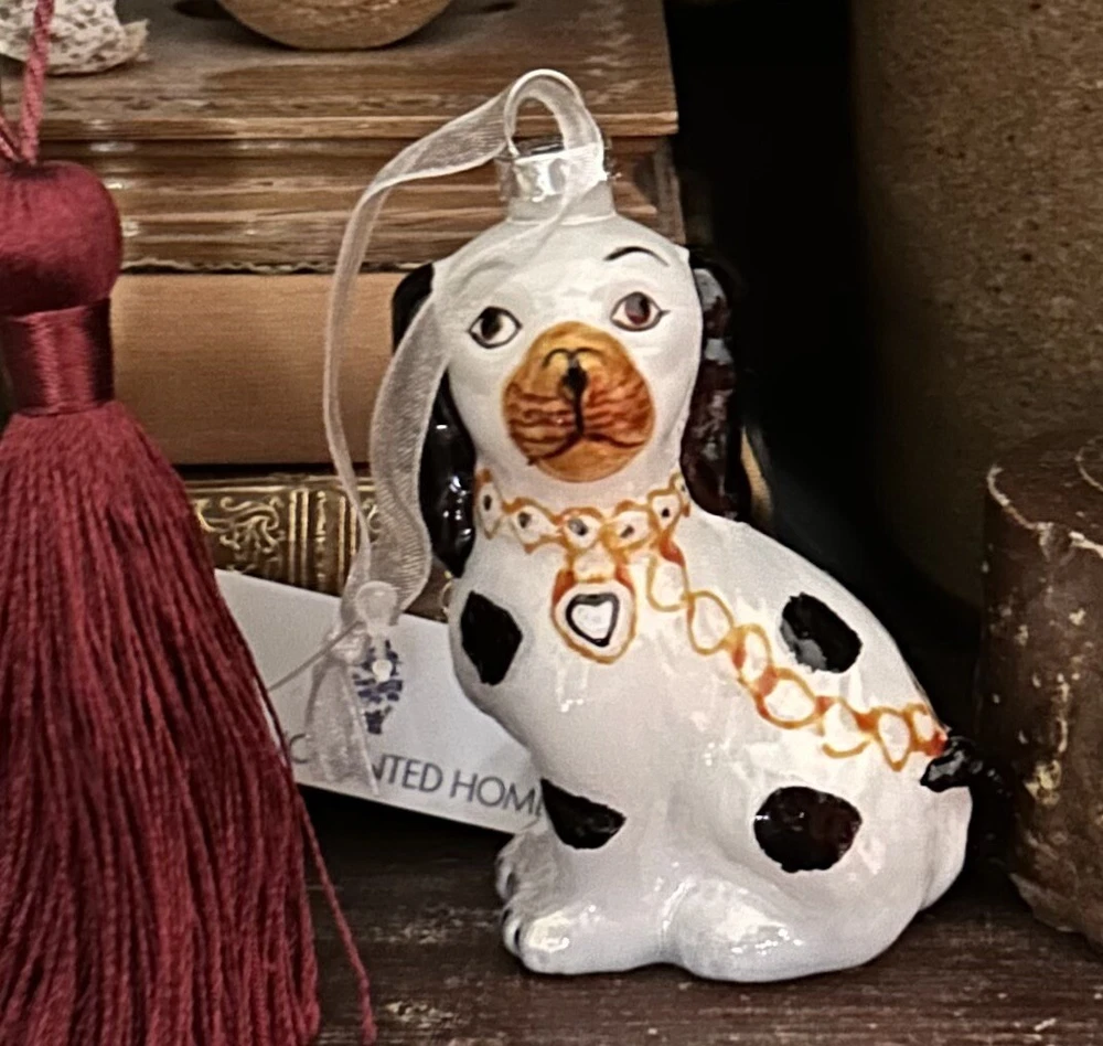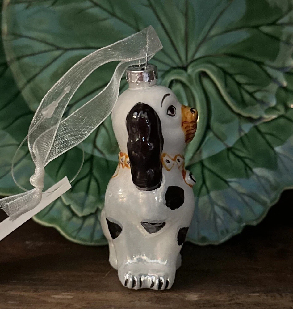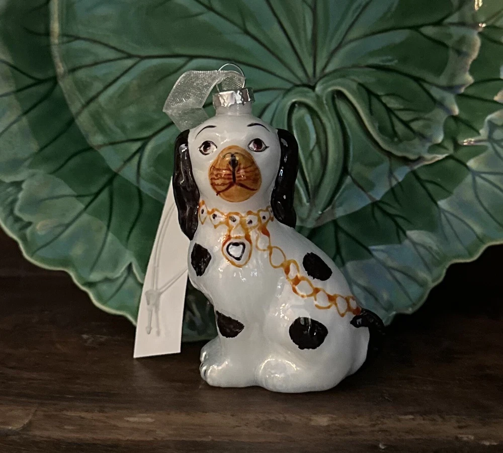 Antique Staffordshire Dog Ornament brand new height 3” plus hanger ring handpainted glass white & black similar ornaments are listed separately (see last pics) smoke-free & pet-free home I'm cleaning out my closets of gifts never given, items never used, clothes never worn, projects never done, etc. If interested, check out my other items. I definitely combine shipping!