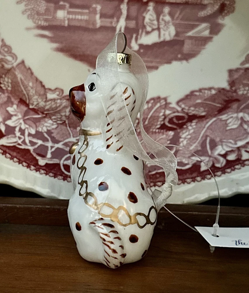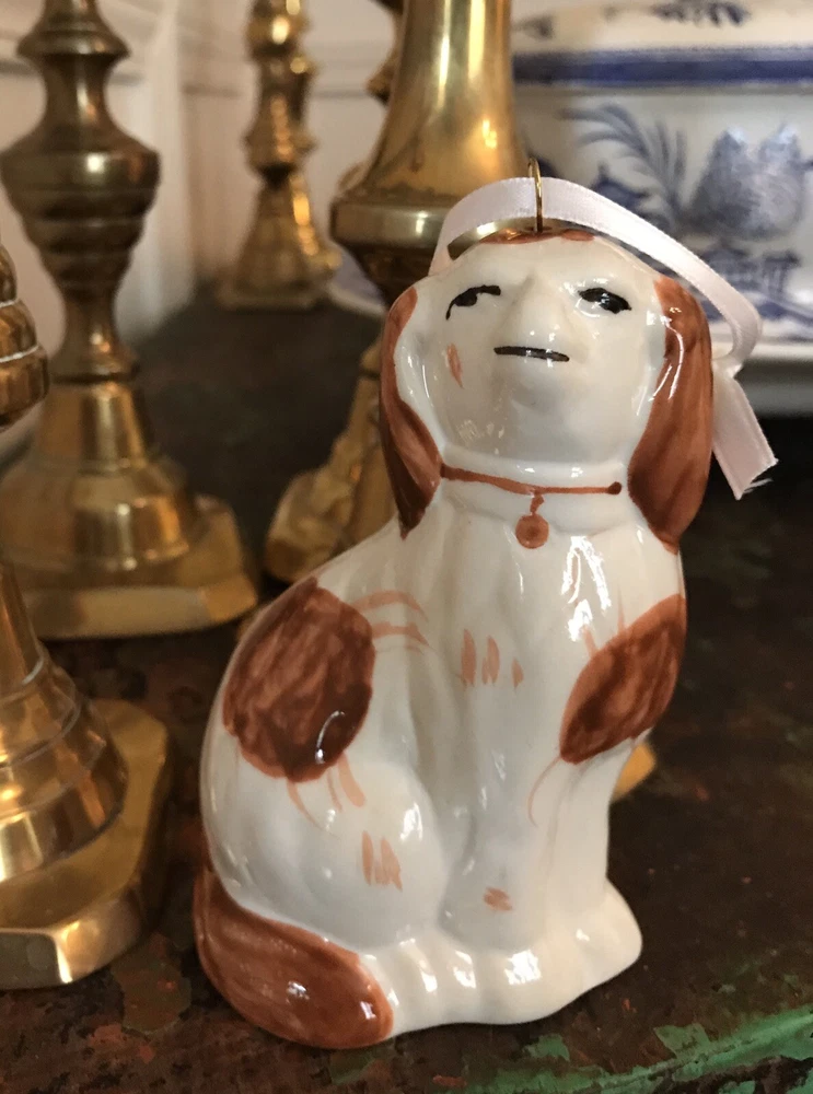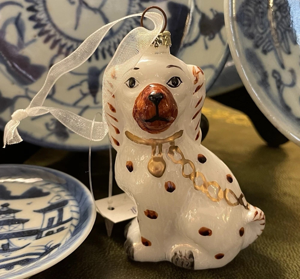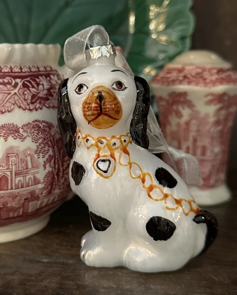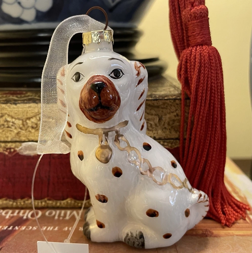 Antique Staffordshire Dog Ornament brand new height 3” plus hanger ring handpainted glass white & black similar ornaments are listed separately (see last pics) smoke-free & pet-free home I'm cleaning out my closets of gifts never given, items never used, clothes never worn, projects never done, etc. If interested, check out my other items. I definitely combine shipping!